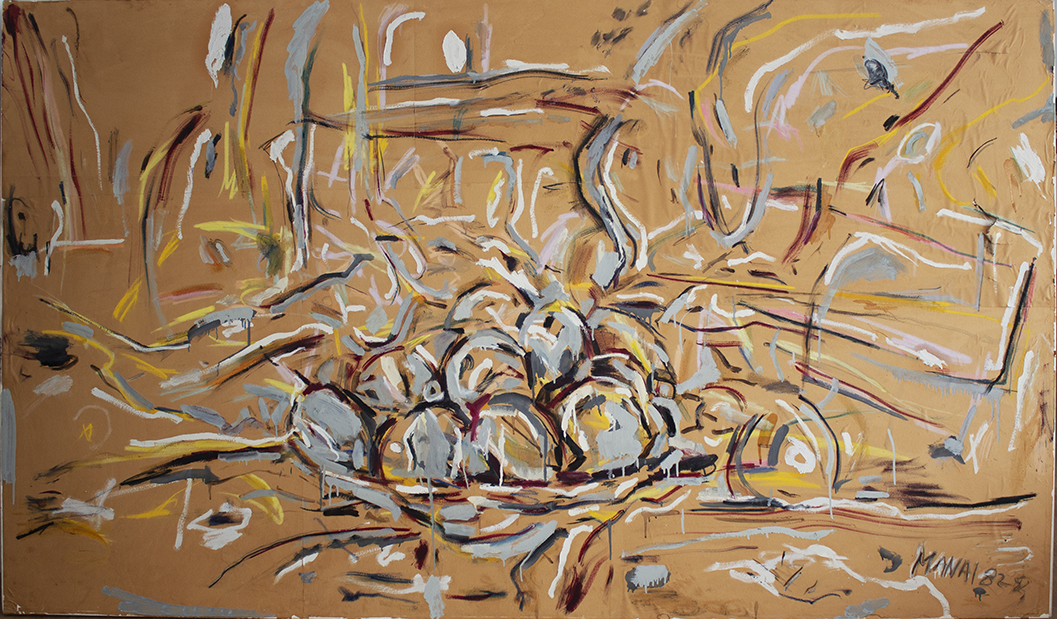 Piero Manai, Olio e smalto su carta applicata su tela, 140x240 cm, Senza titolo, 1982