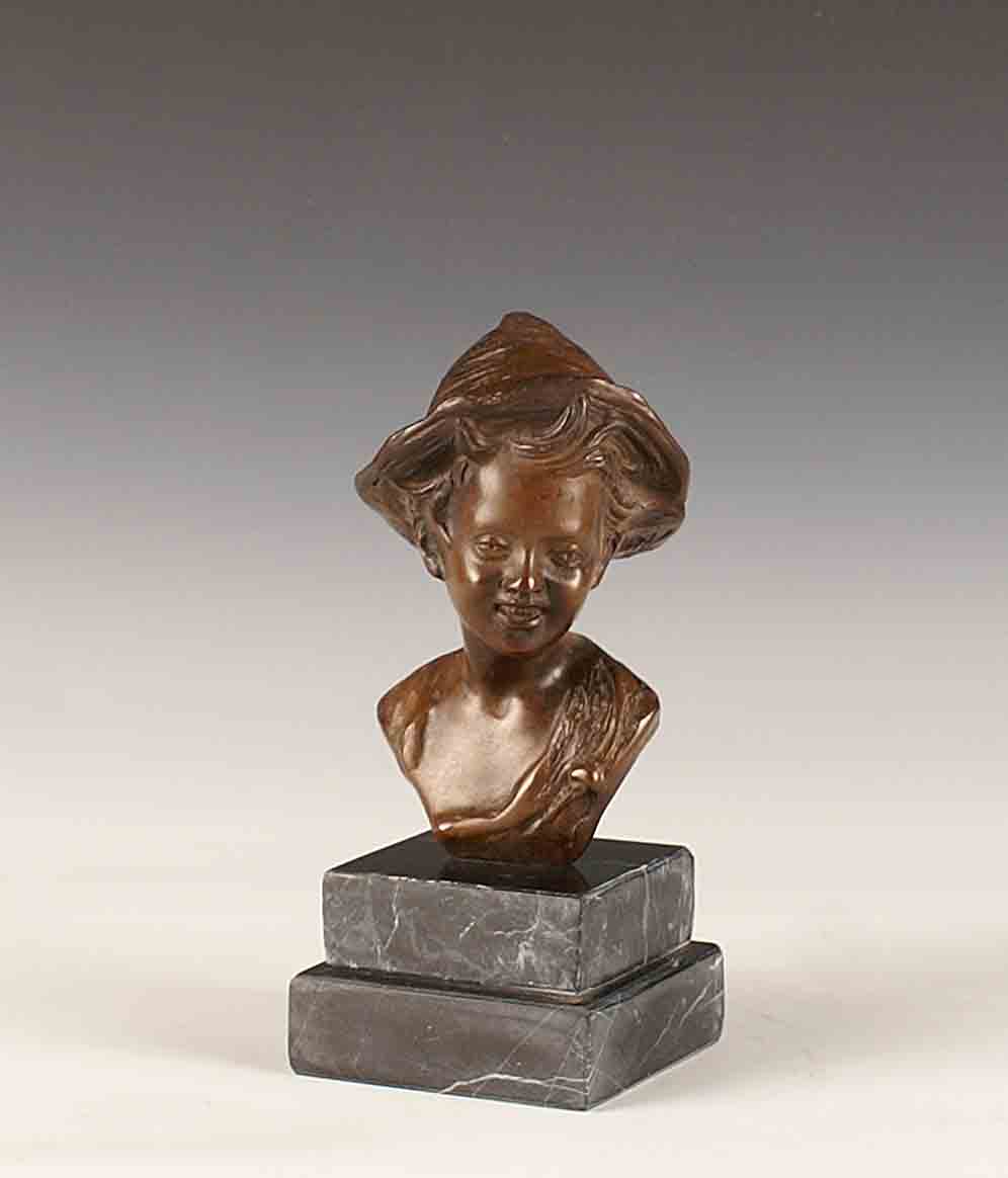 Lotto 457 | Busto di giovinetto in bronzo poggiante su base in marmo, XIX secolo, h. cm. 22.