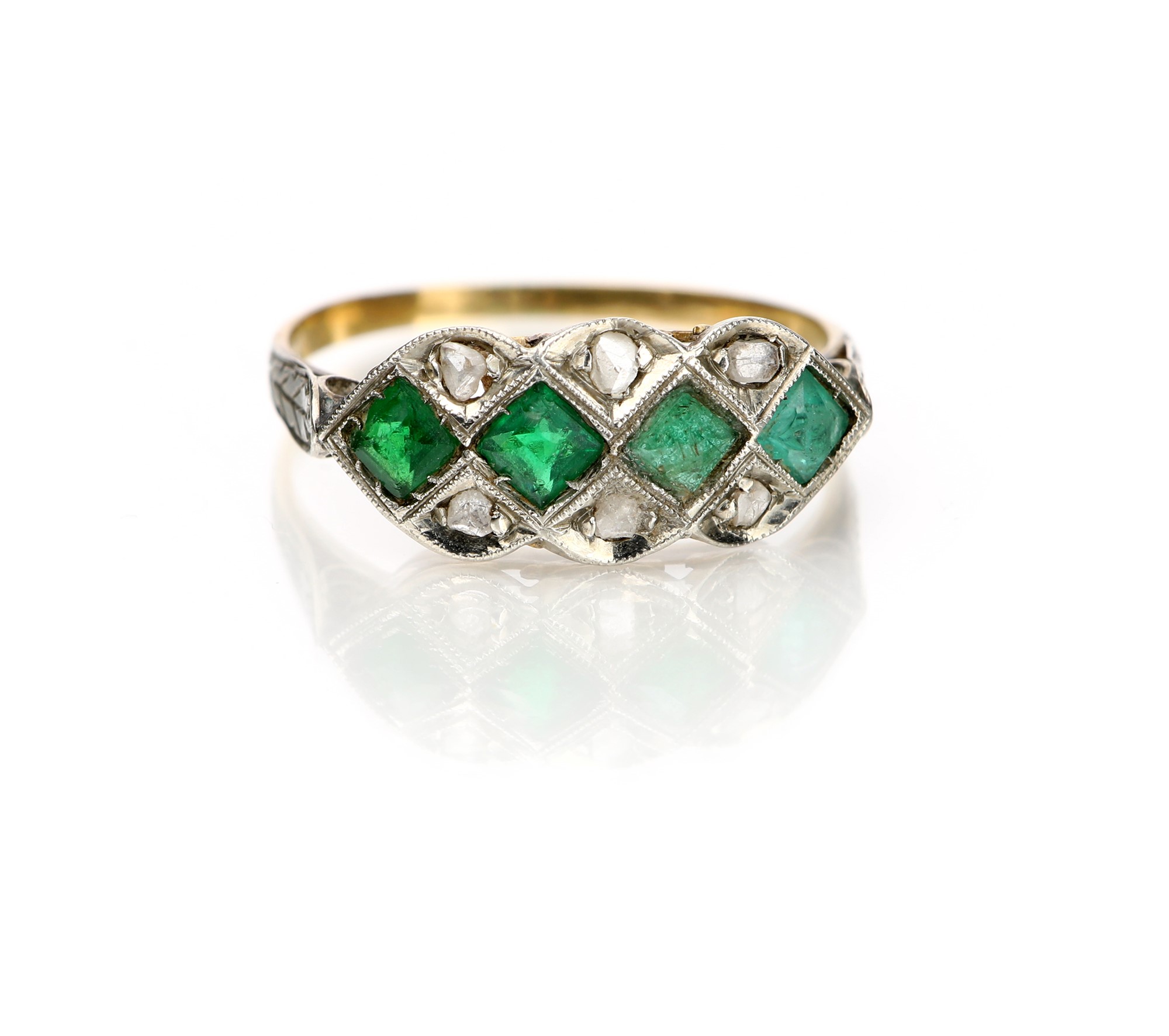 Lotto 160 | Anello antico in oro e argento diamanti smeraldi e pietre verdi Misura 15