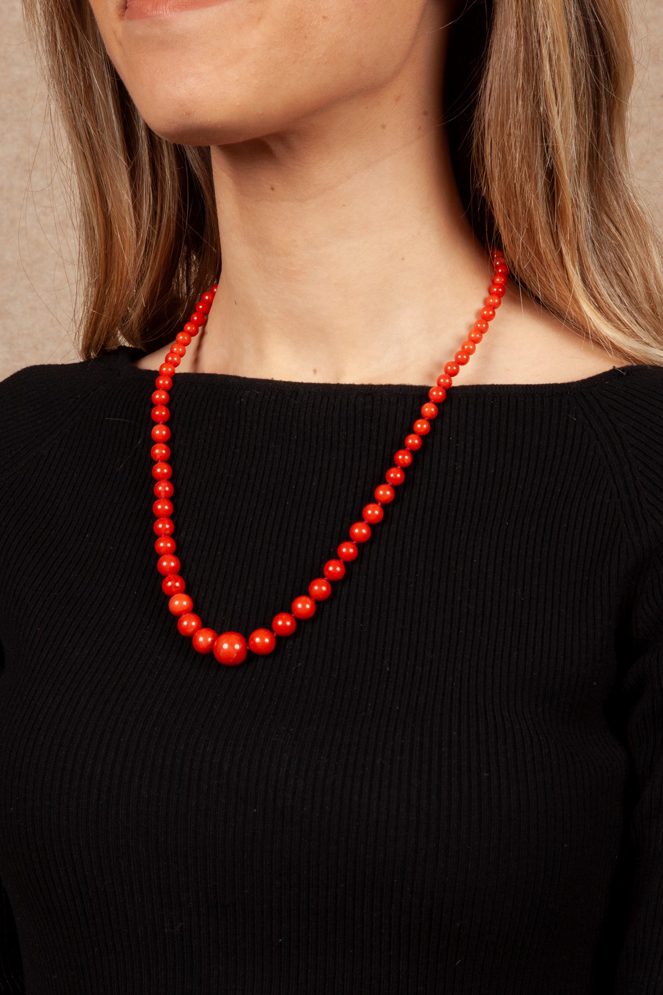 Collana di corallo rosso a sfere e oro cm 58 - sfera mm 5,5-13,5