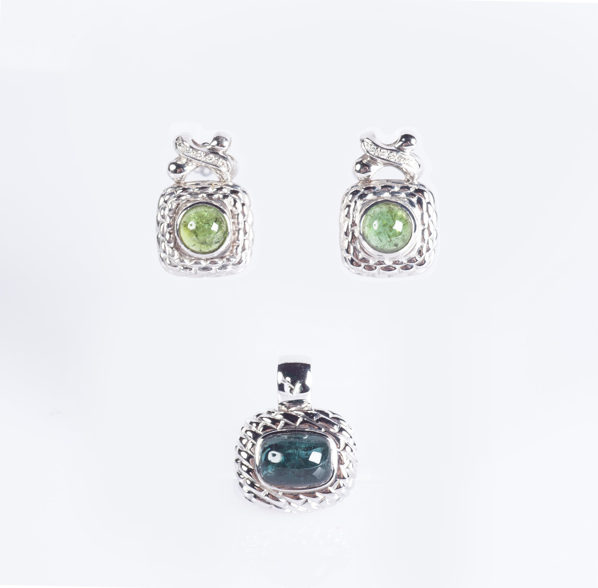 Fope. Parure di pendente e orecchini in oro e tormaline verdi