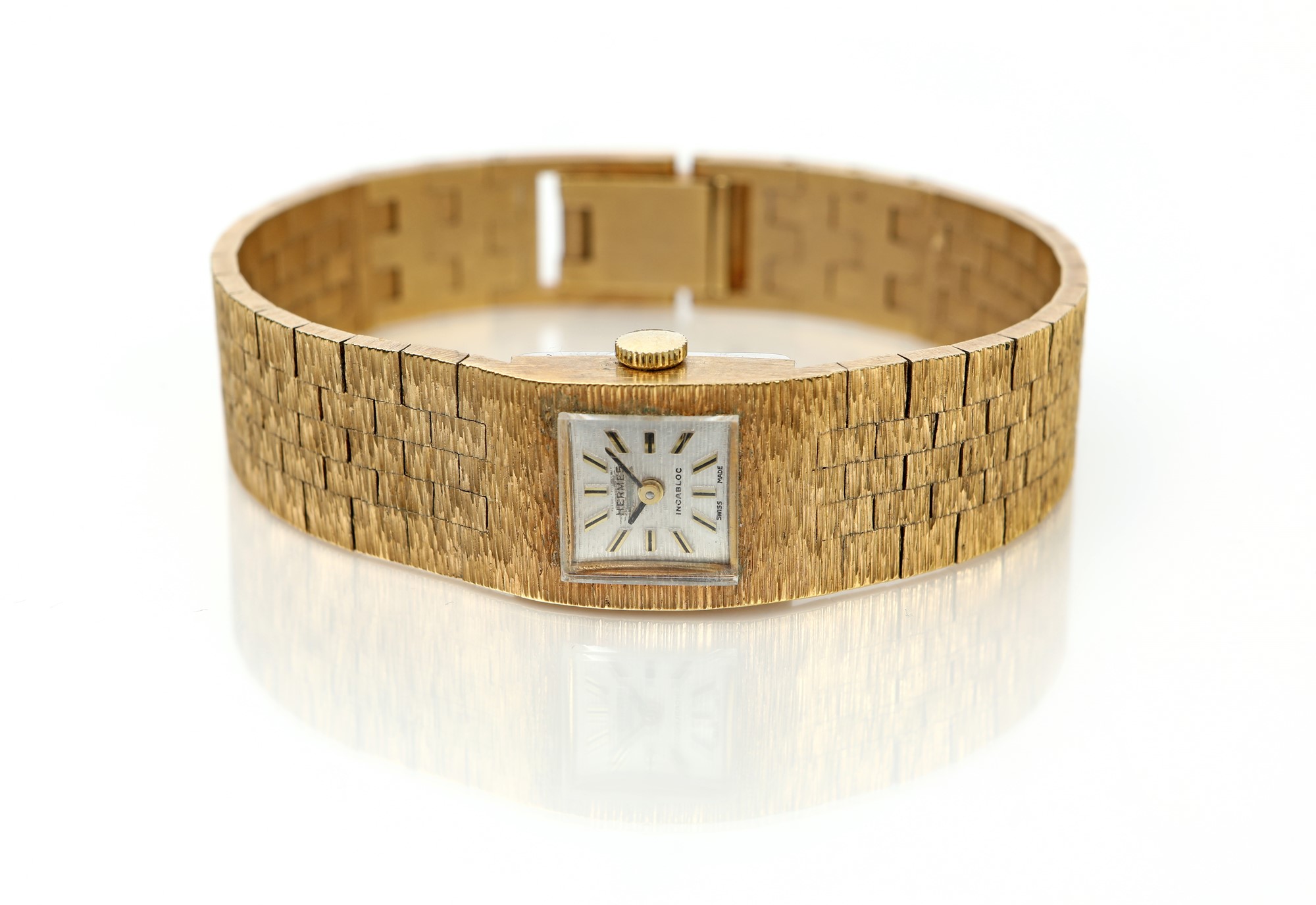 Lotto 185 | Hermes - Orologio vintage in metallo dorato cm 16,5