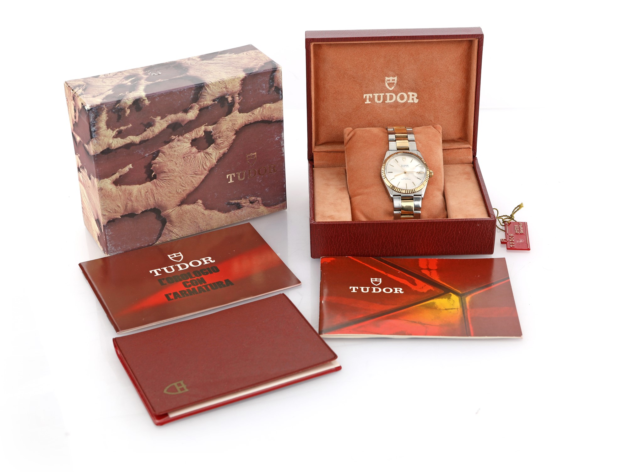 Orologio da polso con cassa e bracciale in acciaio e oro. Movimento meccanico a carica automatica con calendario, modello Tudor Prince Date. Completo di scatola e garanzia.