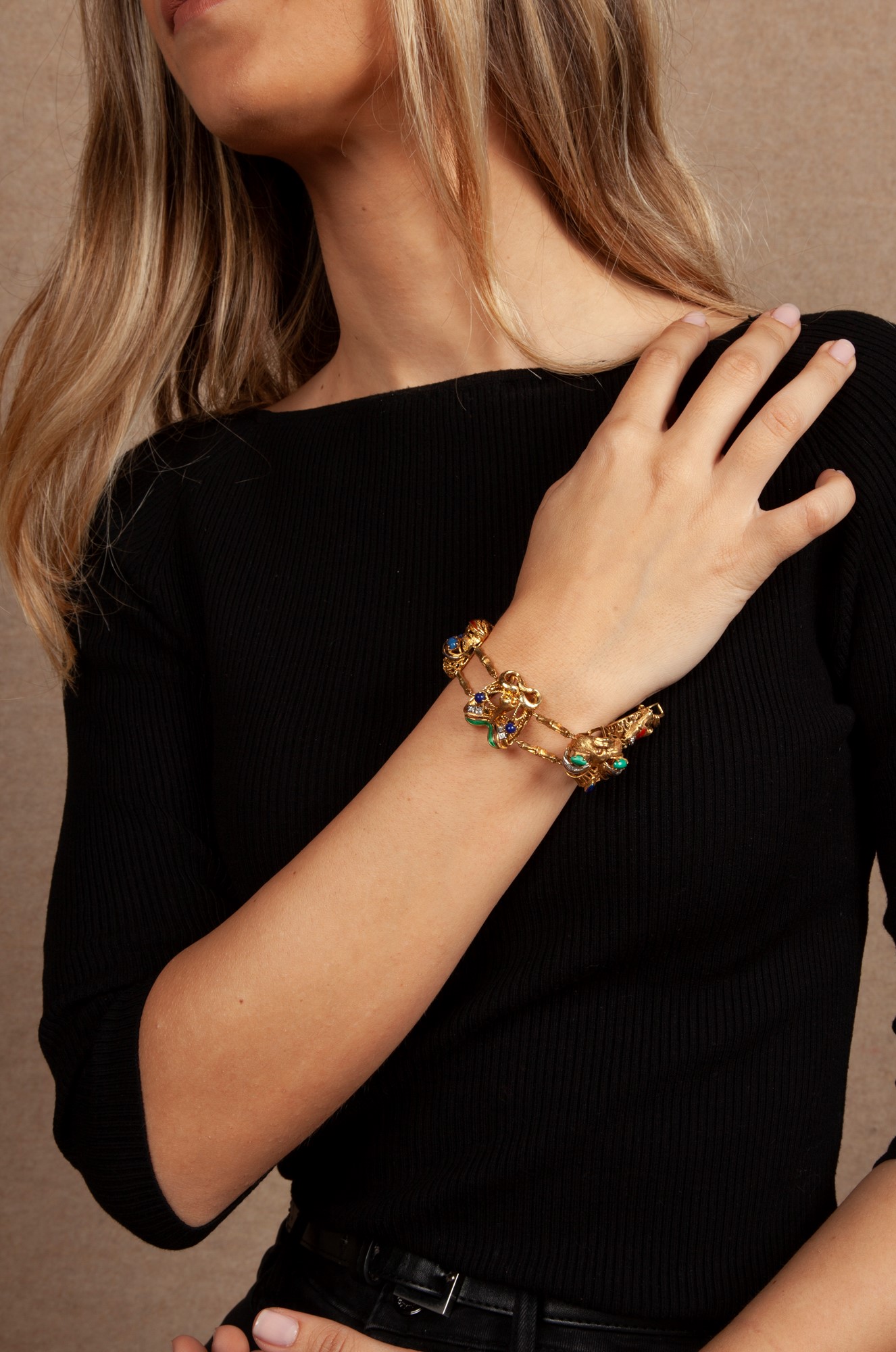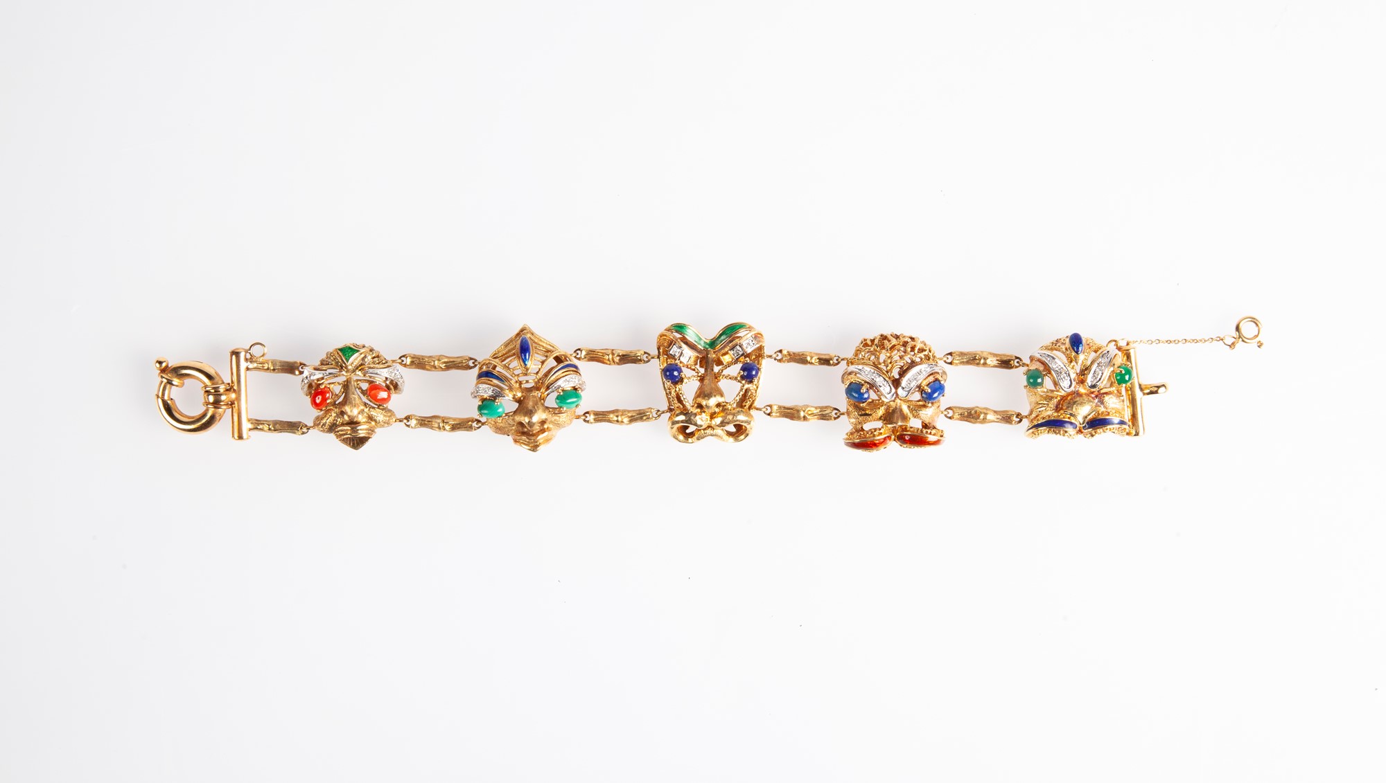 Bracciale mascheroni in oro smalti e pietre Lunghezza cm. 19,50