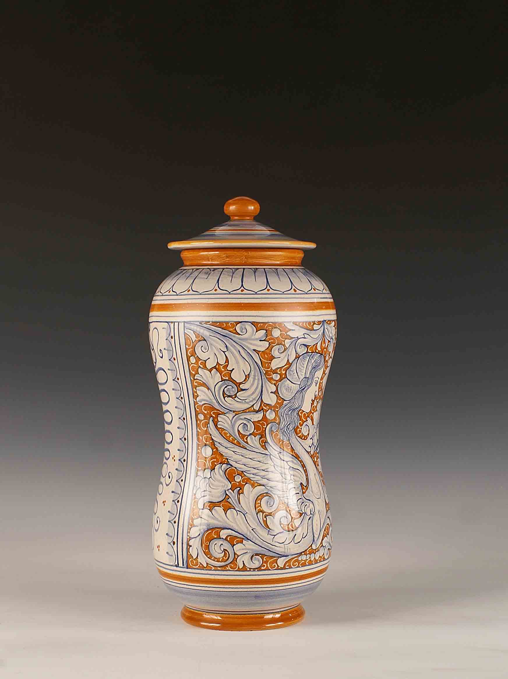 Potiche in ceramica dipinta a policromia, Deruta, vecchia manifattura, h. cm. 38.