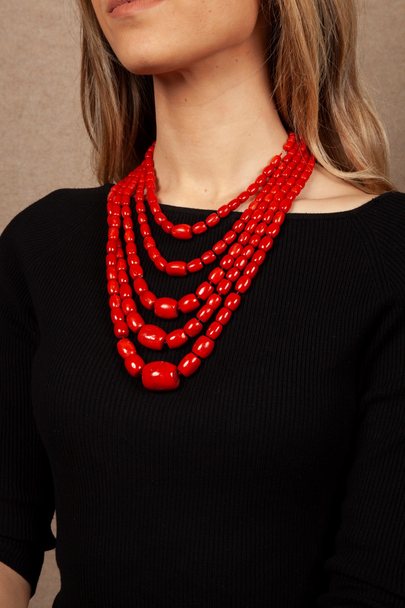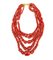 Collana in corallo a cinque fili di barilotti a diversa misura con fermezza in oro giallo