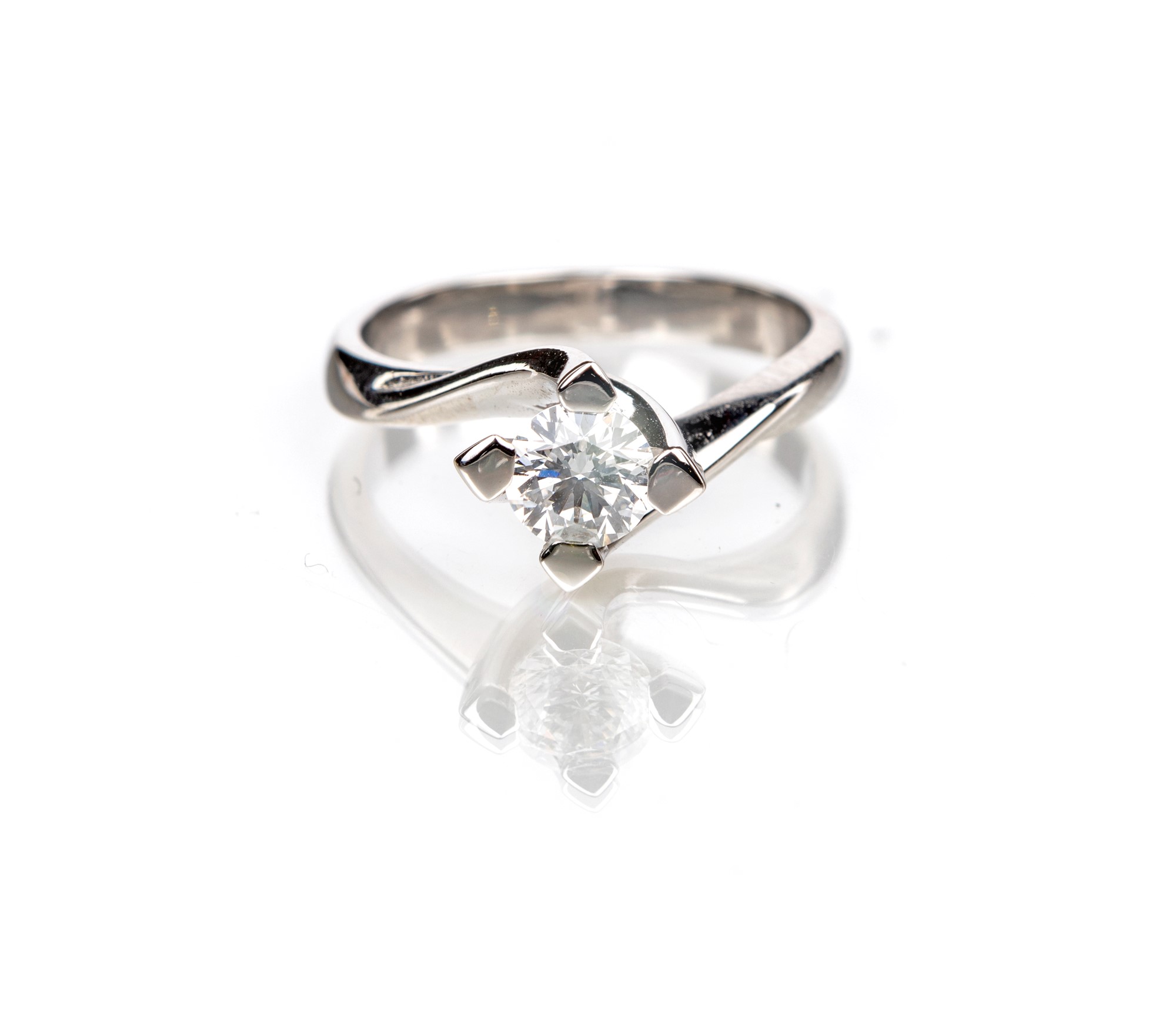 Oro bianco 750/000. Diamante taglio rotondo brillante ct. 0,50 ca. H VS1. Peso complessivo gr. 4.