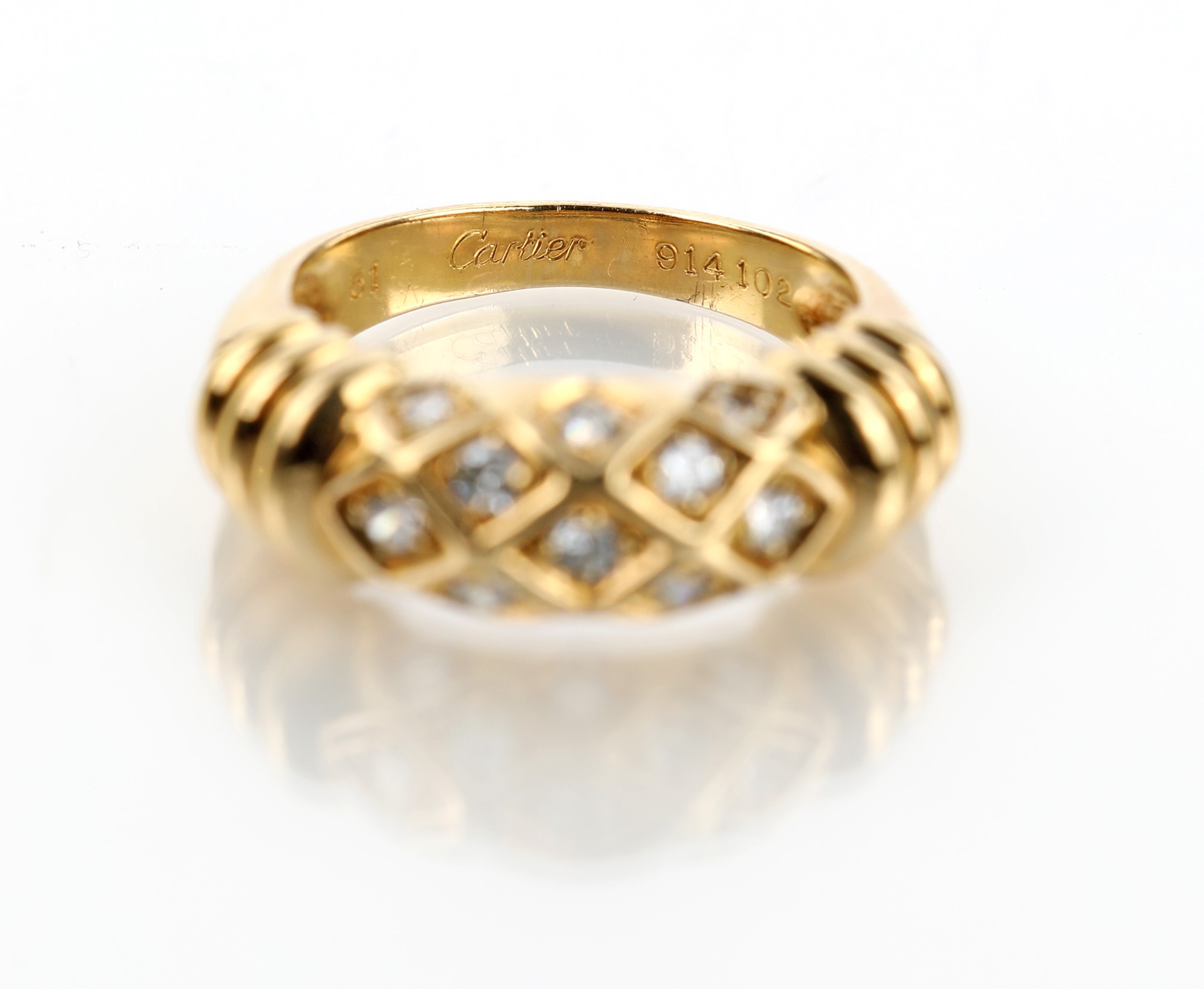 Oro giallo 750/000. Diamanti taglio brillante ct. 0,20. Punzoni francesi. Peso complessivo gr. 6.
