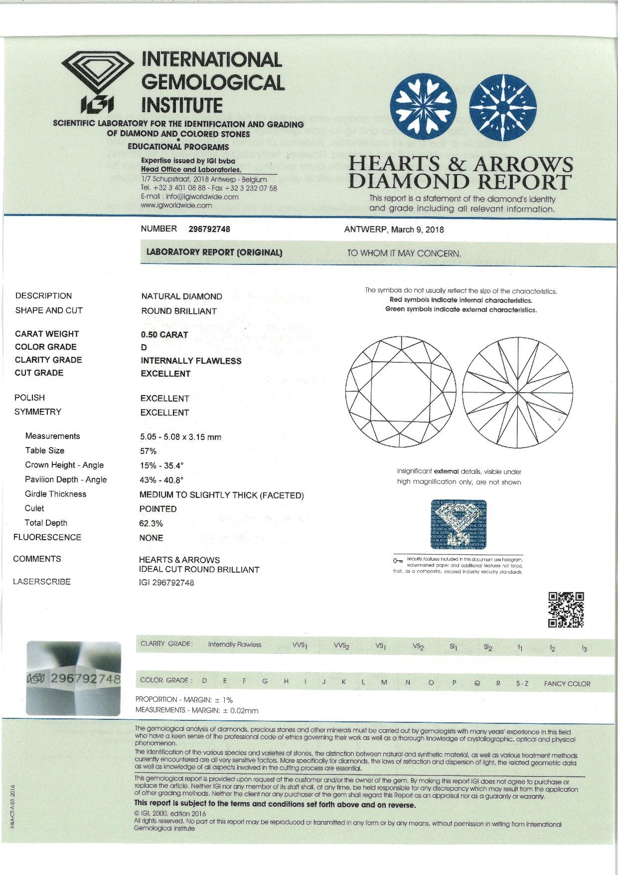 Diamante in taglio rotondo brillante 0,50. D-IF .Certificazione IGI 296792748.