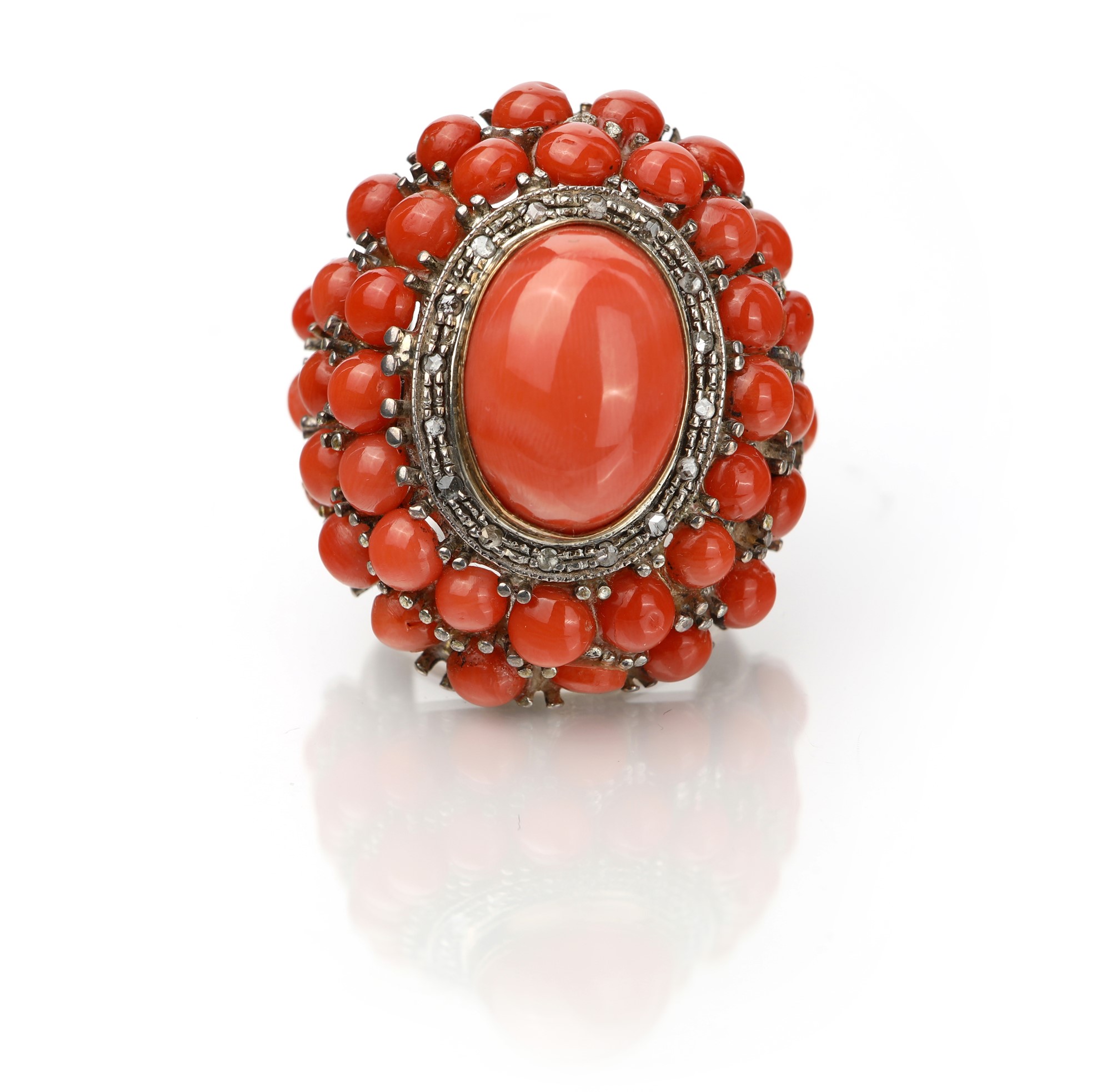 Anello in oro, argento corallo e diamanti
