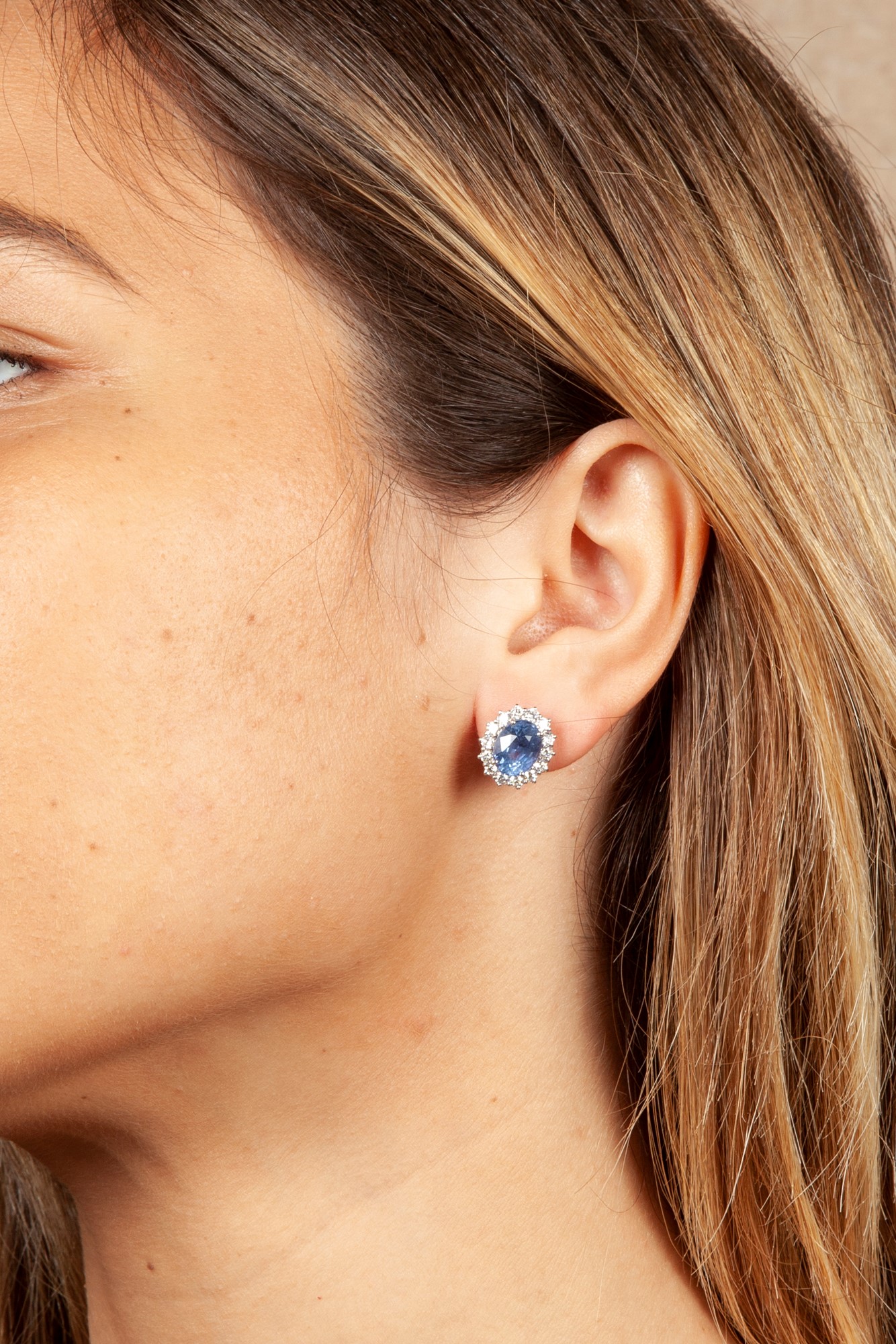 Coppia di orecchini in oro zaffiri e brillanti. cm 1,5x 1