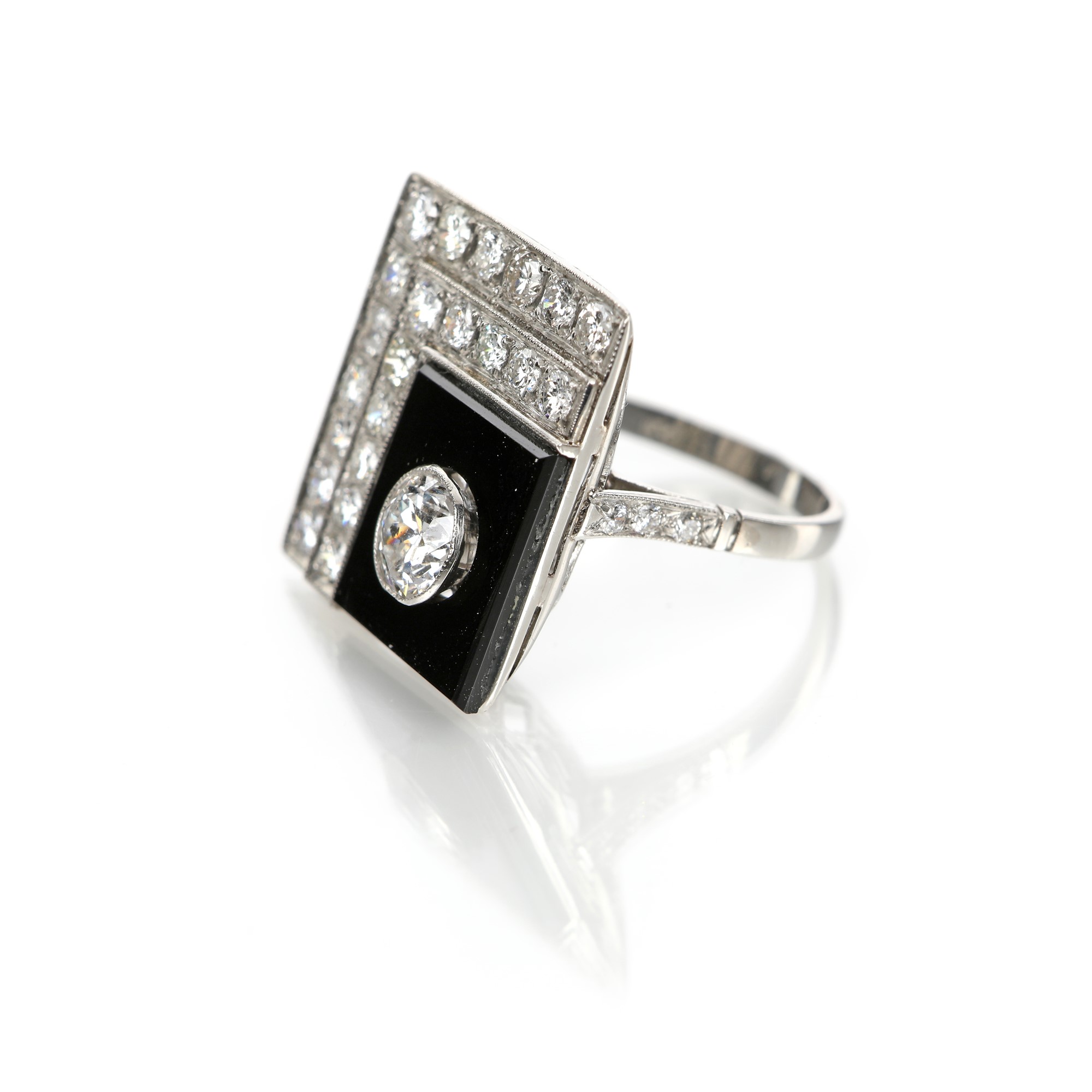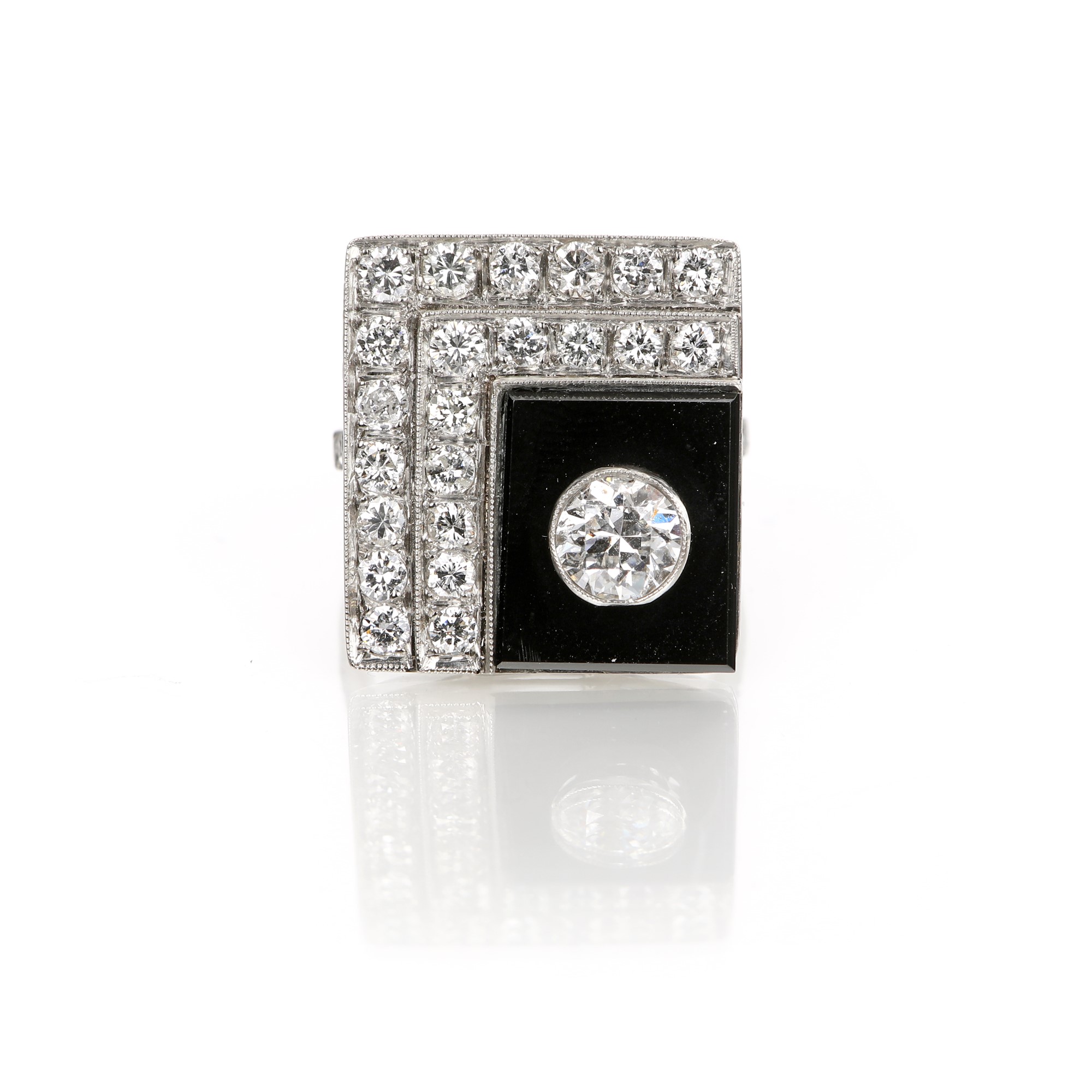 Oro bianco 750/000. Diamante centrale in taglio rotondo ct.0,60 ca.e brillanti ct. 0,80 ca.