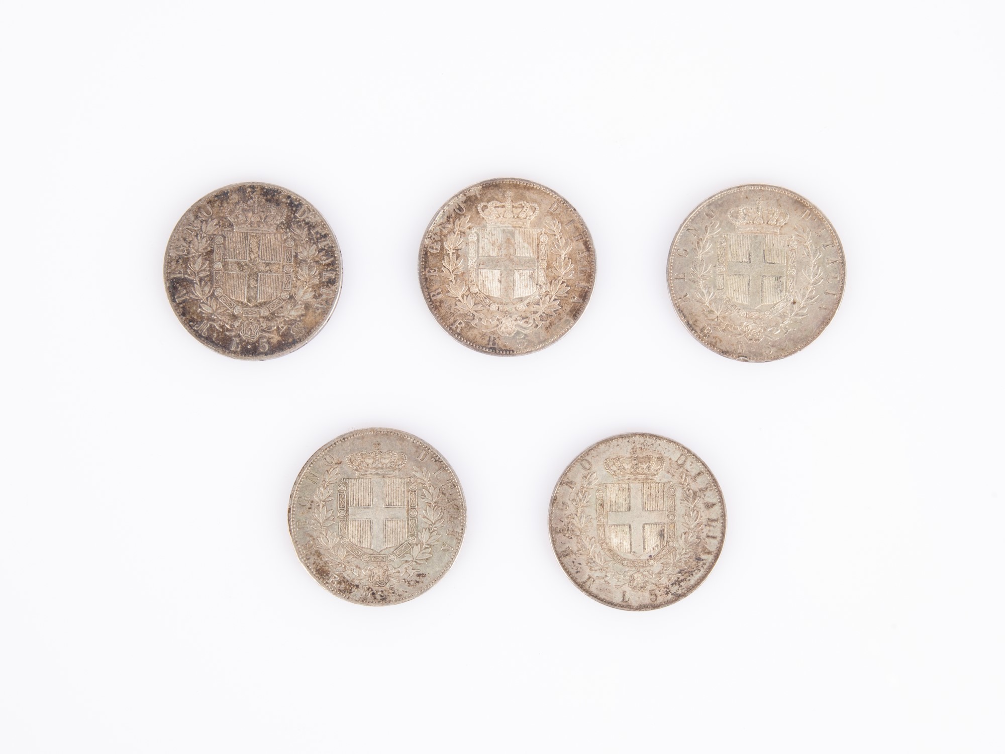 5 monete da 5 Lire Vittorio Emanuele II Regno d'Italia