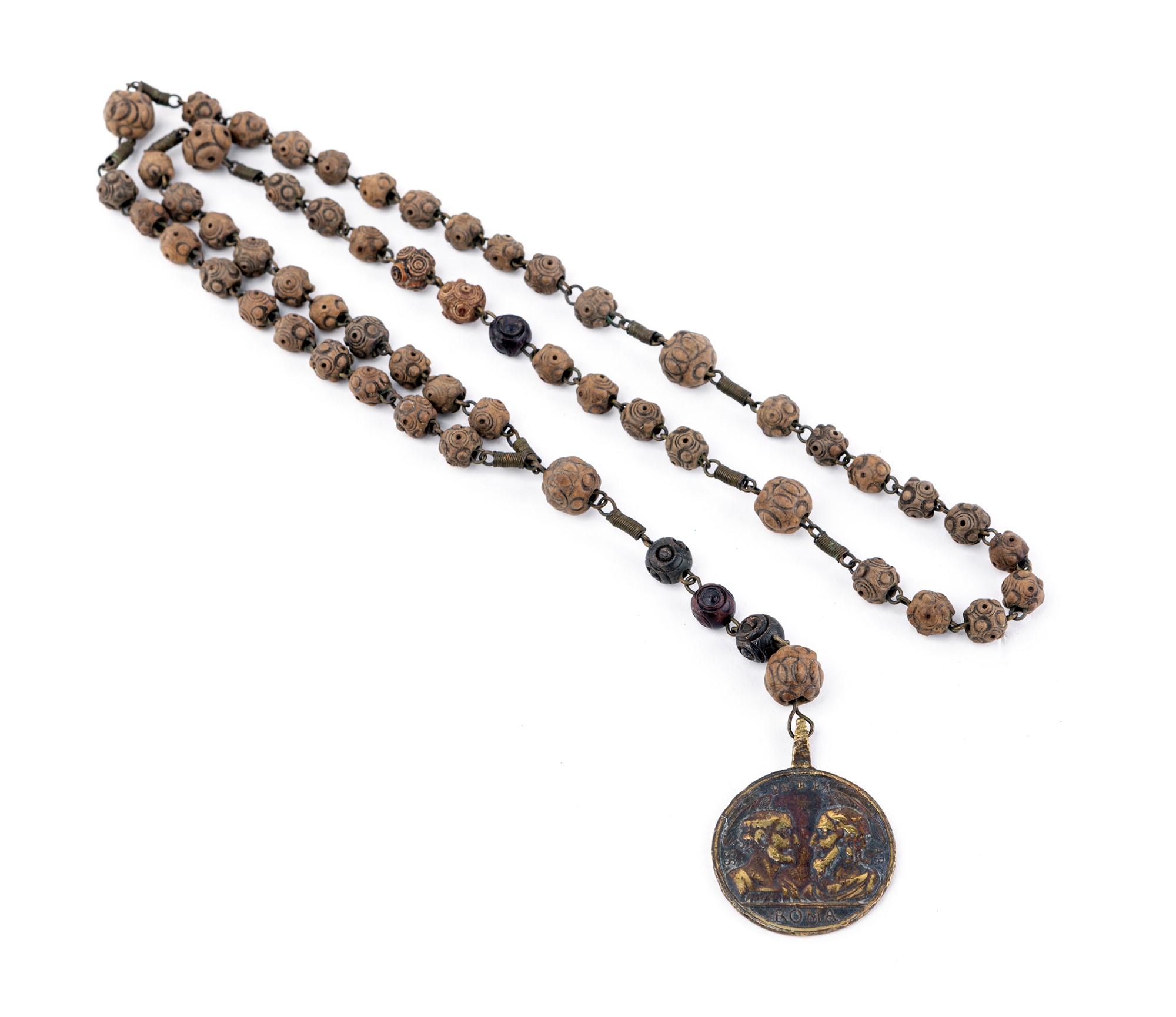 Diametro mm 45, Montata su rosario con grani in legno di ulivo, lunghezza complessiva cm. 63
