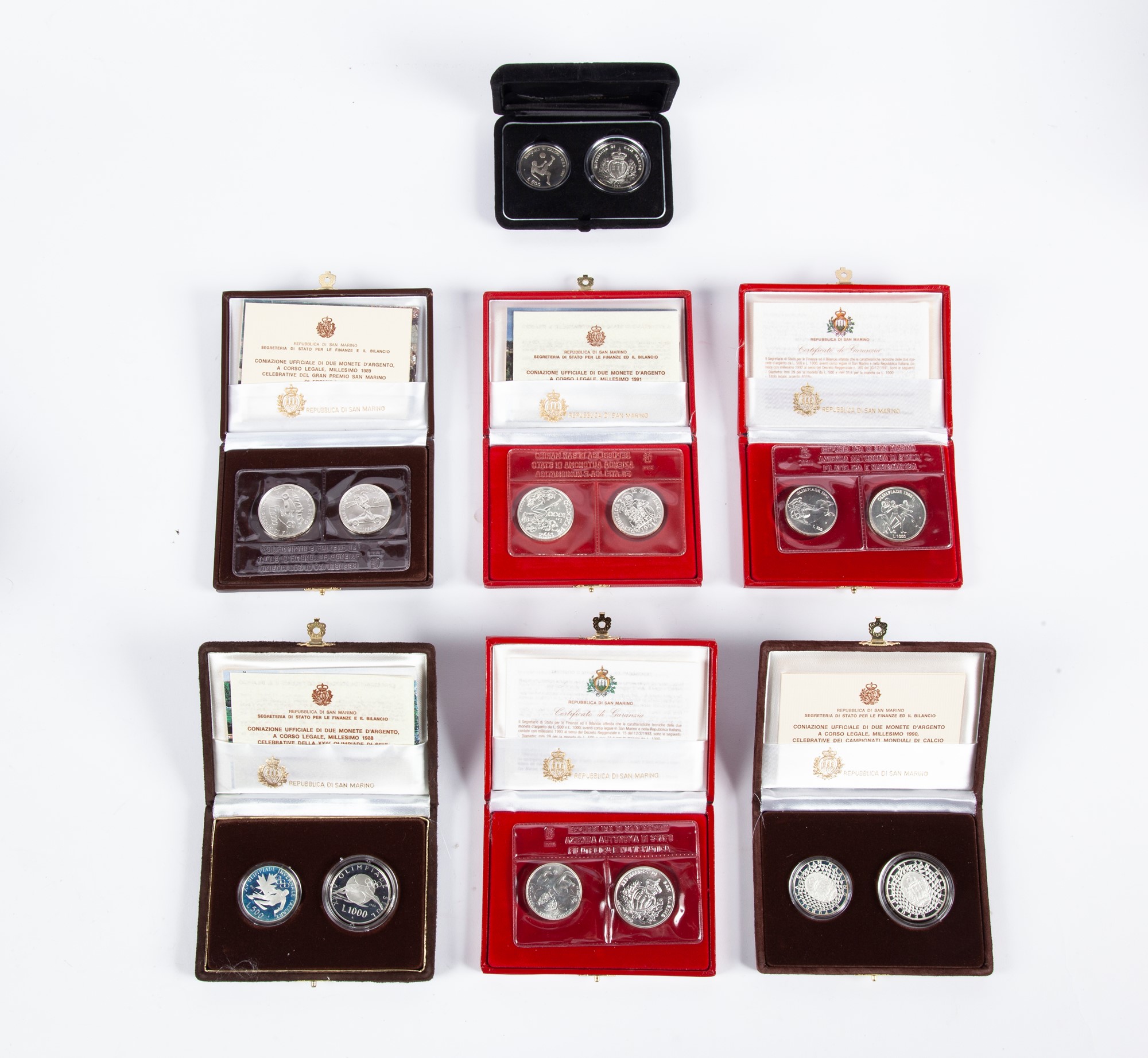 Lotto di 7 dittici 500 Lire e 1.000 Lire 1988, 1989, 1990, 1991, 1992, 1993 e 1994 San Marino