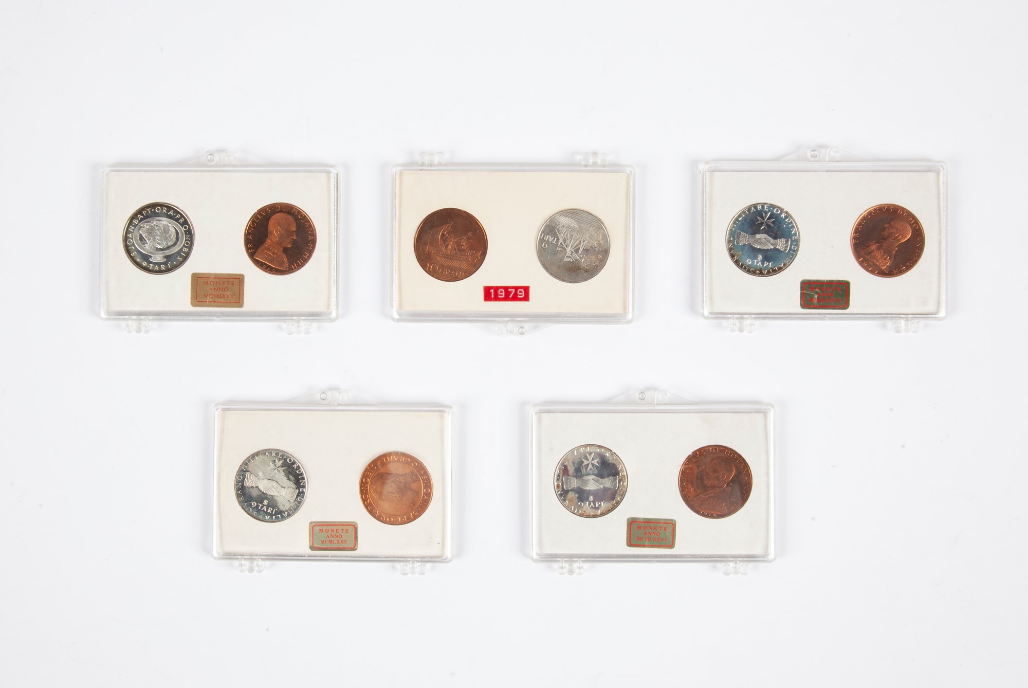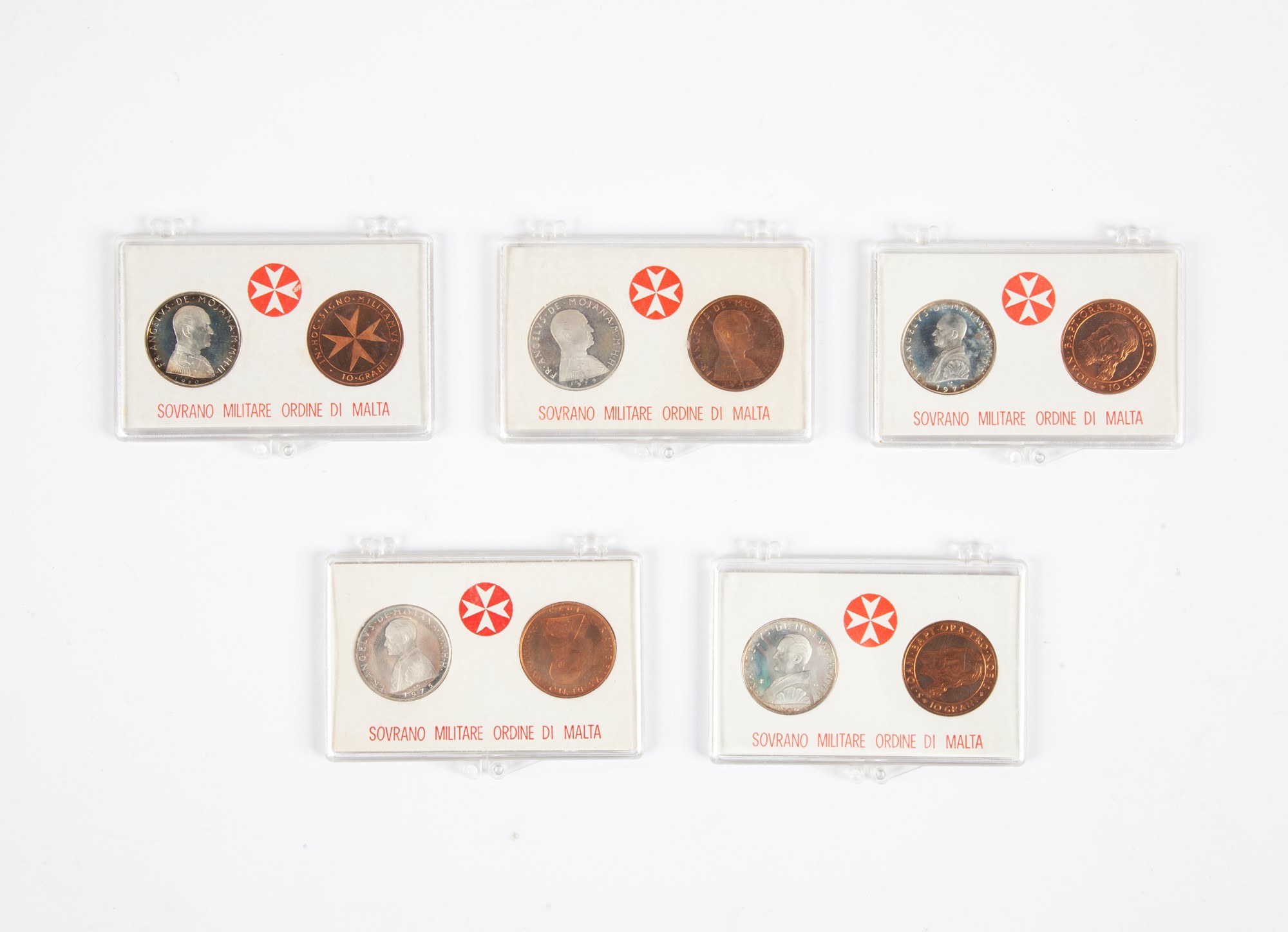 Lotto di 5 dittici 9 Tarì e 10 Grani 1975, 1976, 1977, 1979 e 1980 Sovrano Militare Ordine di Malta