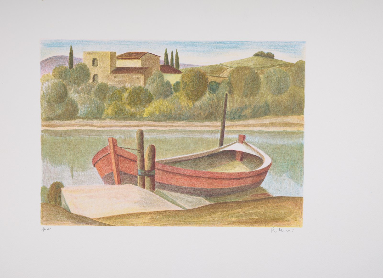 . Litografia. Cm 60,00 x 40,00. P.a. Tiratura e firma in basso a matita. Difetti.