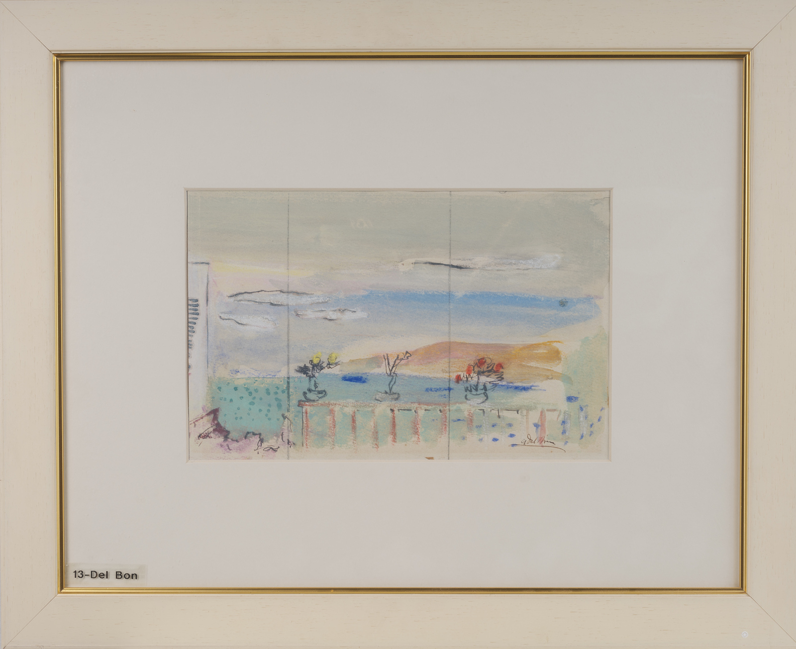 DEL BON ANGELO (1898 - 1952) Paesaggio. Tecnica mista su carta. Cm 23,50 x 15,10. Firma in basso a destra. Al retro timbro Galleria dell'Annunciata, Milano. Provenienza: Galleria Annunciata, Milano; Collezione Besner - Decca.