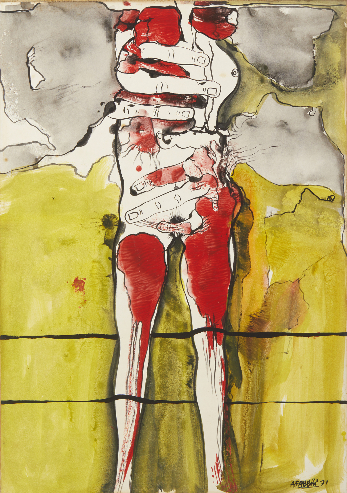 FABBRI AGENORE (1911 - 1998) Senza titolo. 1971. Tecnica mista su carta intelata. Cm 35,00 x 50,00. Firma e anno in basso a destra. Lievi difetti.