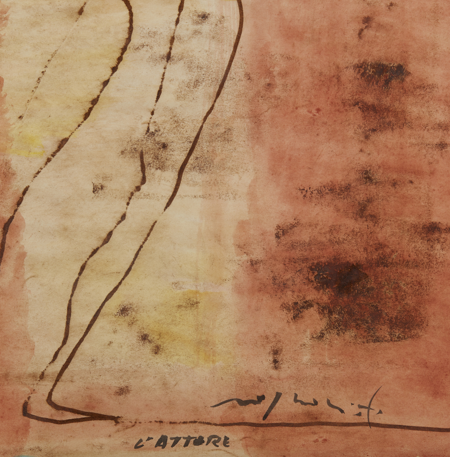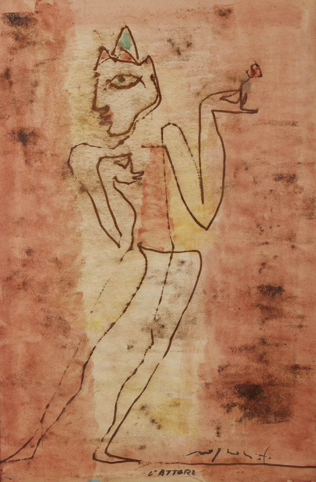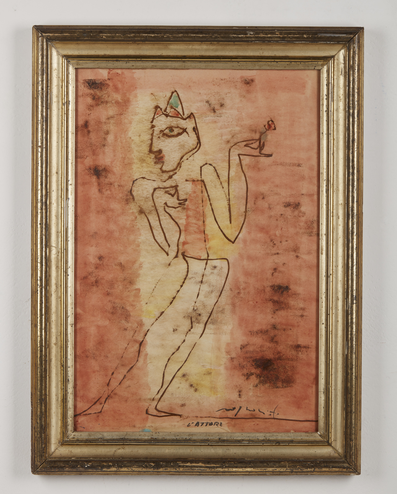 ROGNONI FRANCO (1913 - 1999) L'attore. Tecnica mista su carta. Cm 35,00 x 50,00. Titolo e firma in basso al centro. Provenienza: Collezione Besner - Decca. Cornice presente