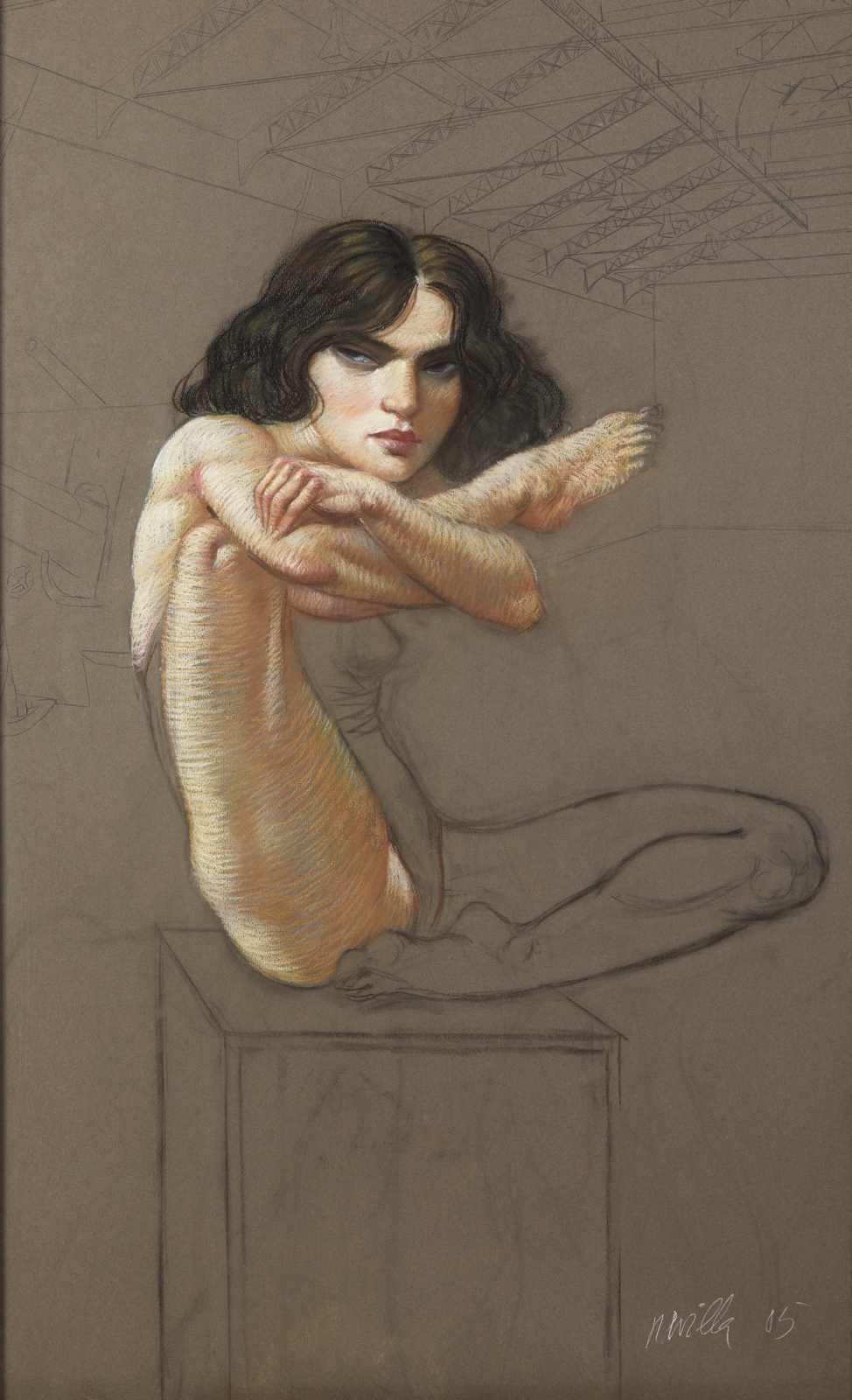 REVILLA CARLOS (n. 1940) Senza titolo. 1985. Tecnica mista e pastelli su carta. Cm 60,00 x 100,00. Firma e anno in basso a destra. Cornice presente