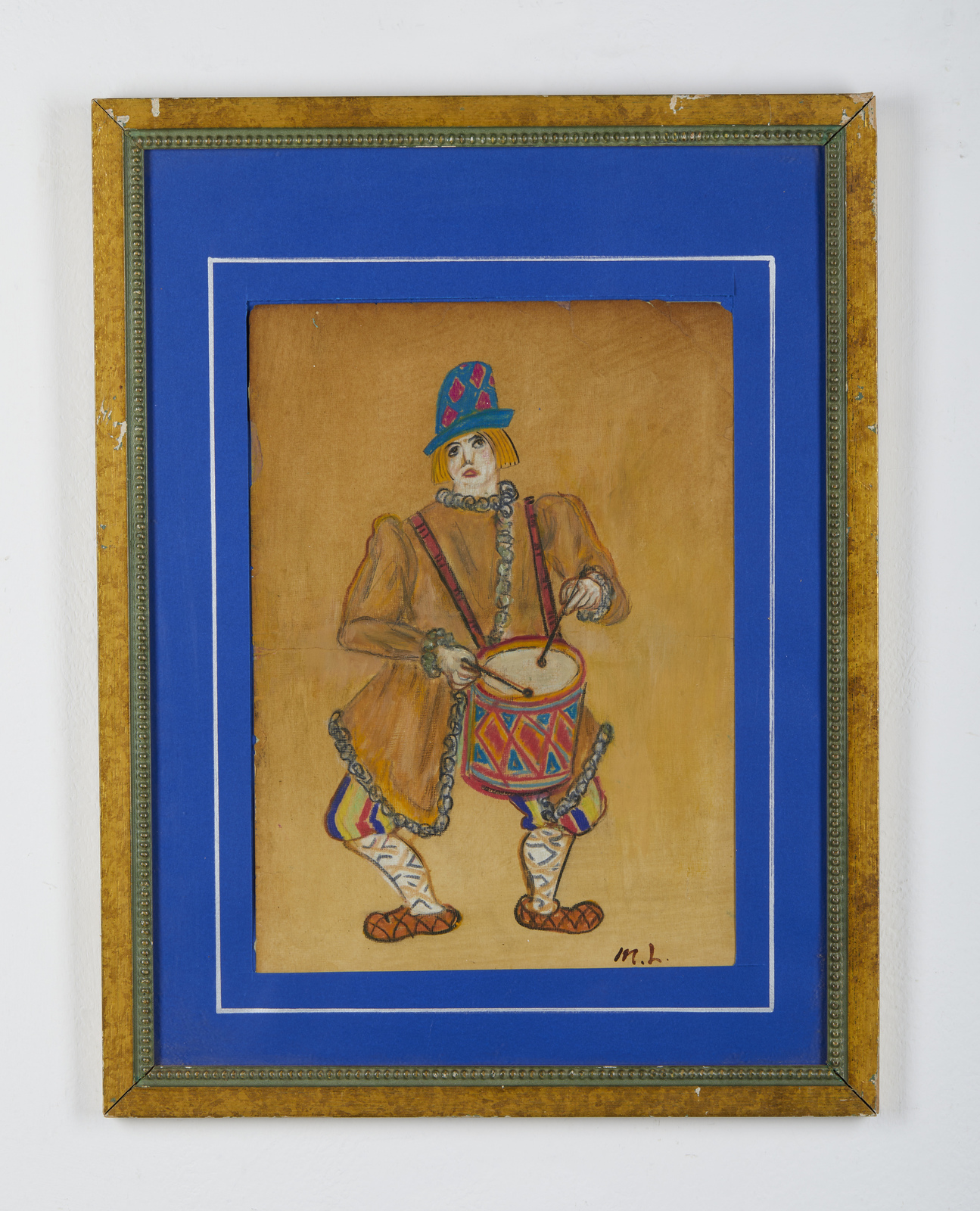 LARIONOV MIKHAIL (1881 - 1964) Costume teatrale. Acquarello e tempera su cartoncino. Cm 25,00 x 34,00. Firma in basso a destra. Al retro timbri Collezione Privata Giorgio Balistrocchi, Cremona. Opera accompagnata da certificato di autenticità rilasciato da Cesare Lisandria, come da documentazione fotografica allegata all'opera. Provenienza: Collezione Balistrocchi, Cremona; Collezione privata, Brescia. Difetti. Cornice presente