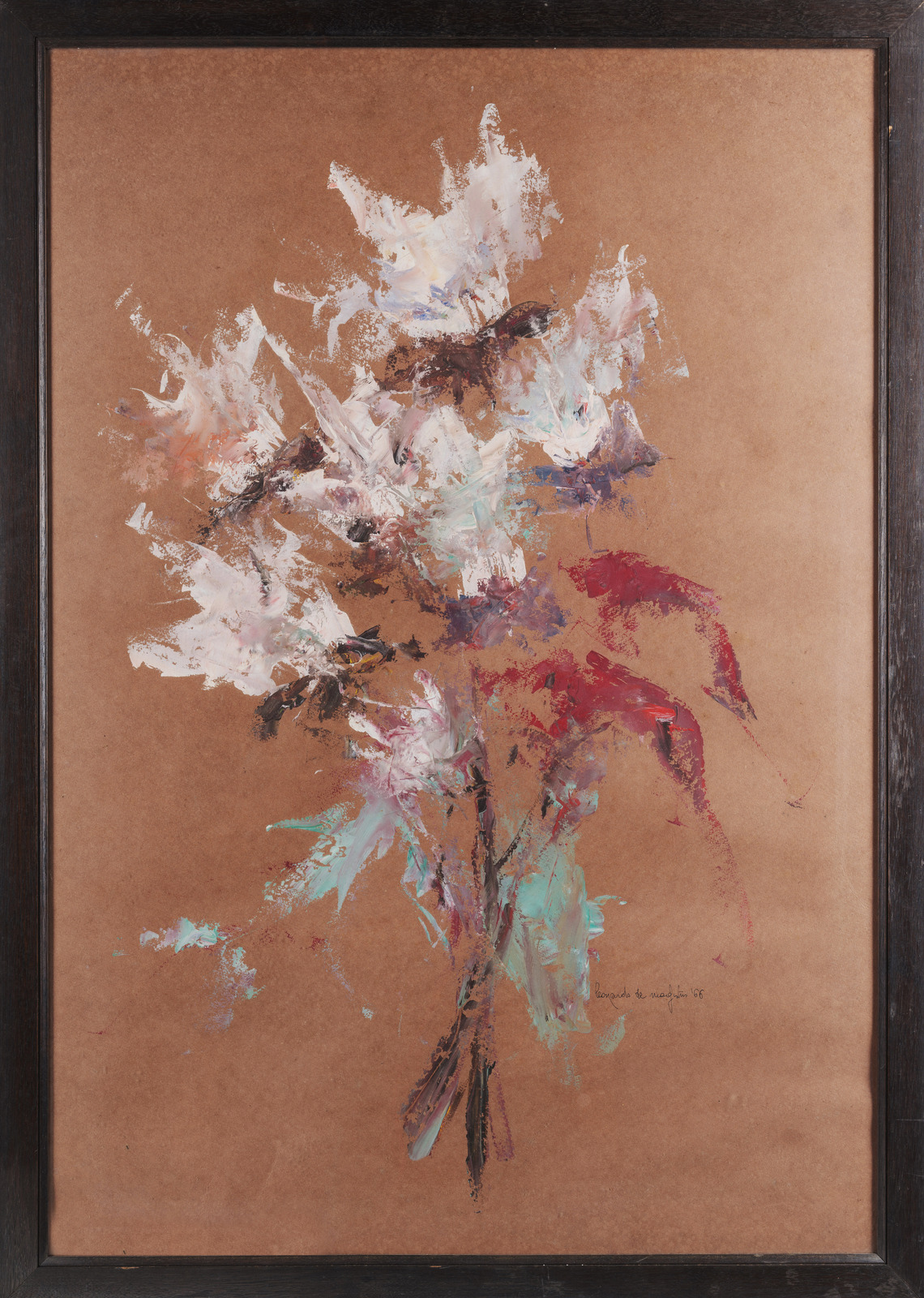 DE MAGISTRIS LEONARDO (n. 1933) Fiori. 1966. Olio su carta. Cm 50,00 x 72,50. Firma e anno in basso a destra. Provenienza: Collezione Besner - Decca. Lievi difetti.