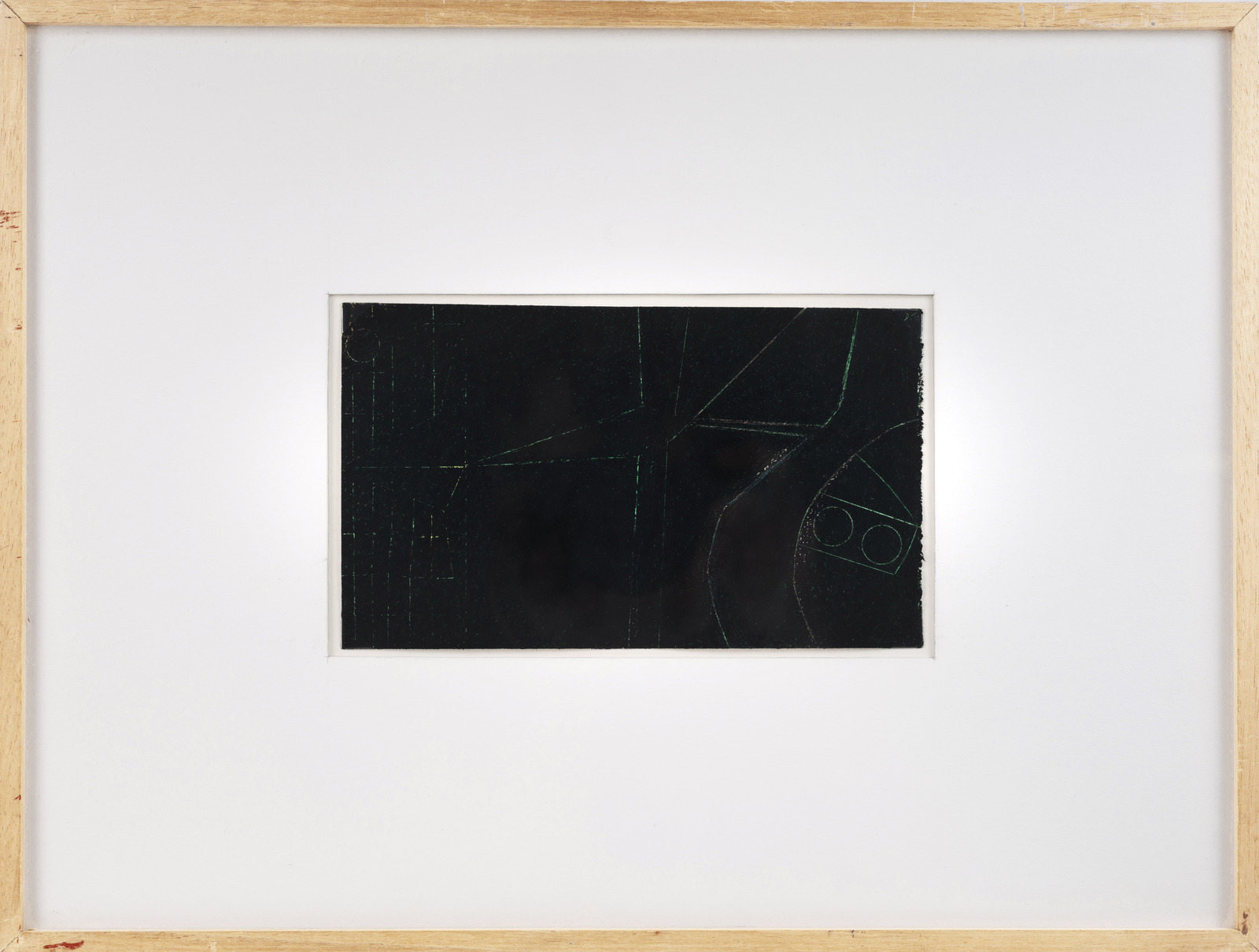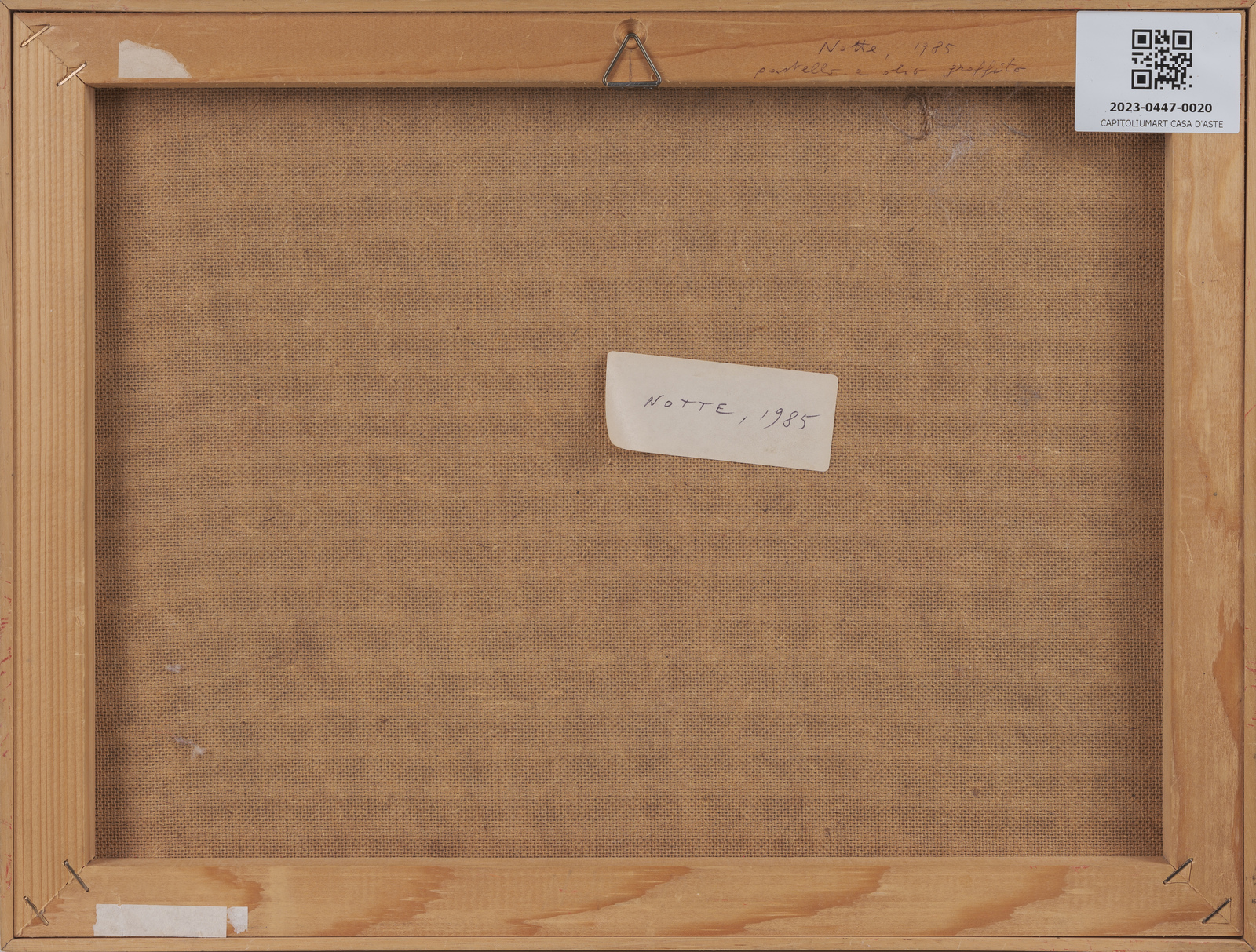 DELLA TORRE ENRICO (n. 1931) Notte. 1985. Tecnica mista su carta. Cm 18,80 x 11,20. Al retro titolo e anno. Cornice presente