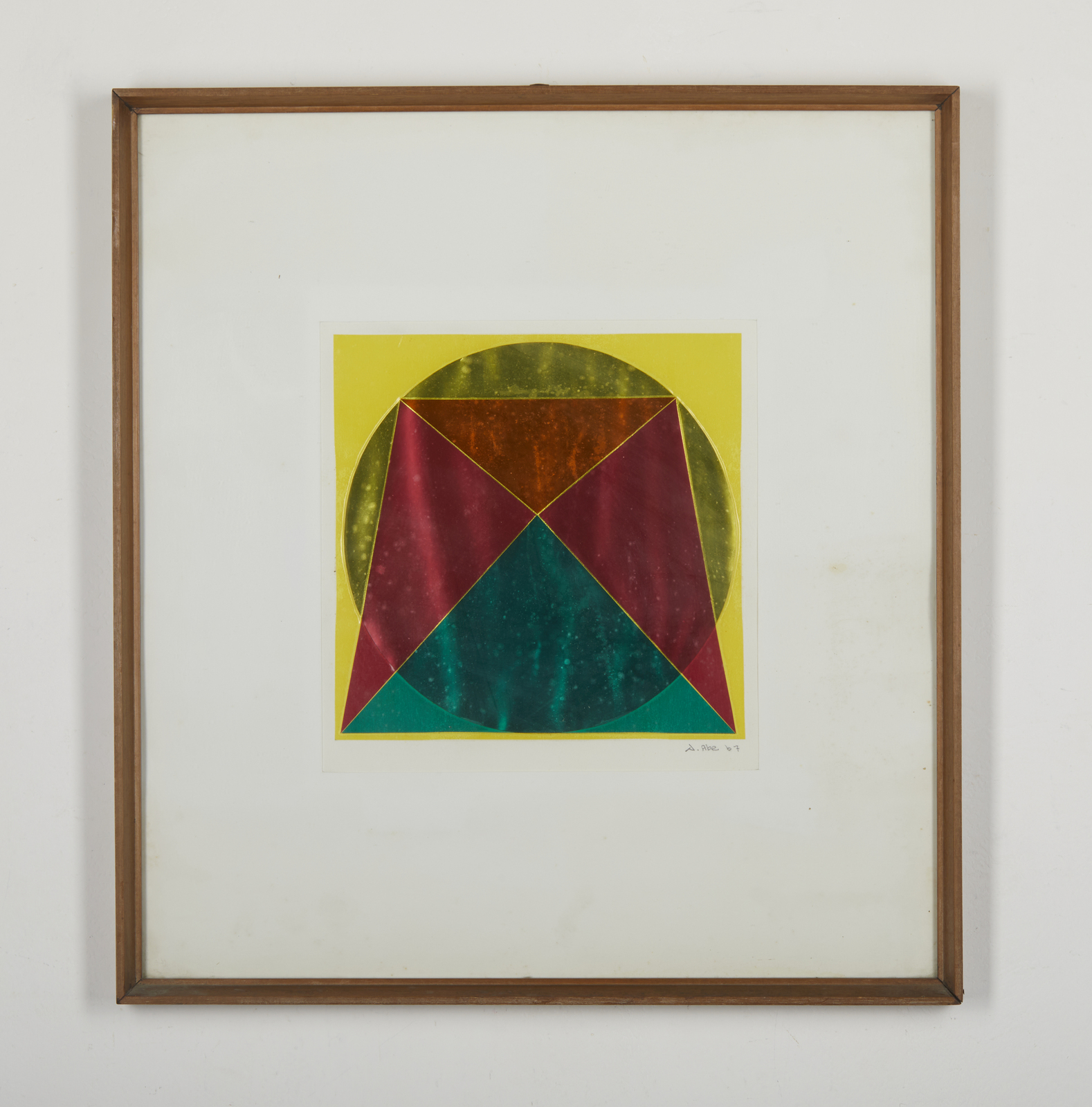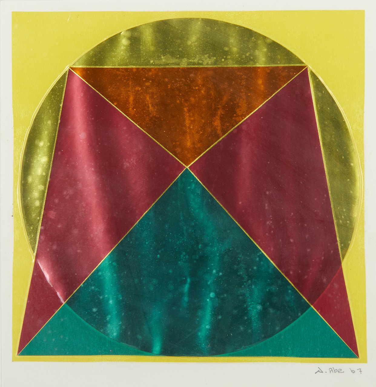 ABE NOBUYA (1913 - 1971) Senza titolo. 1967. Collage e tecnica mista su cartoncino. Cm 25,00 x 27,00. Firma e anno in basso a destra a matita. Lievi difetti. Cornice presente