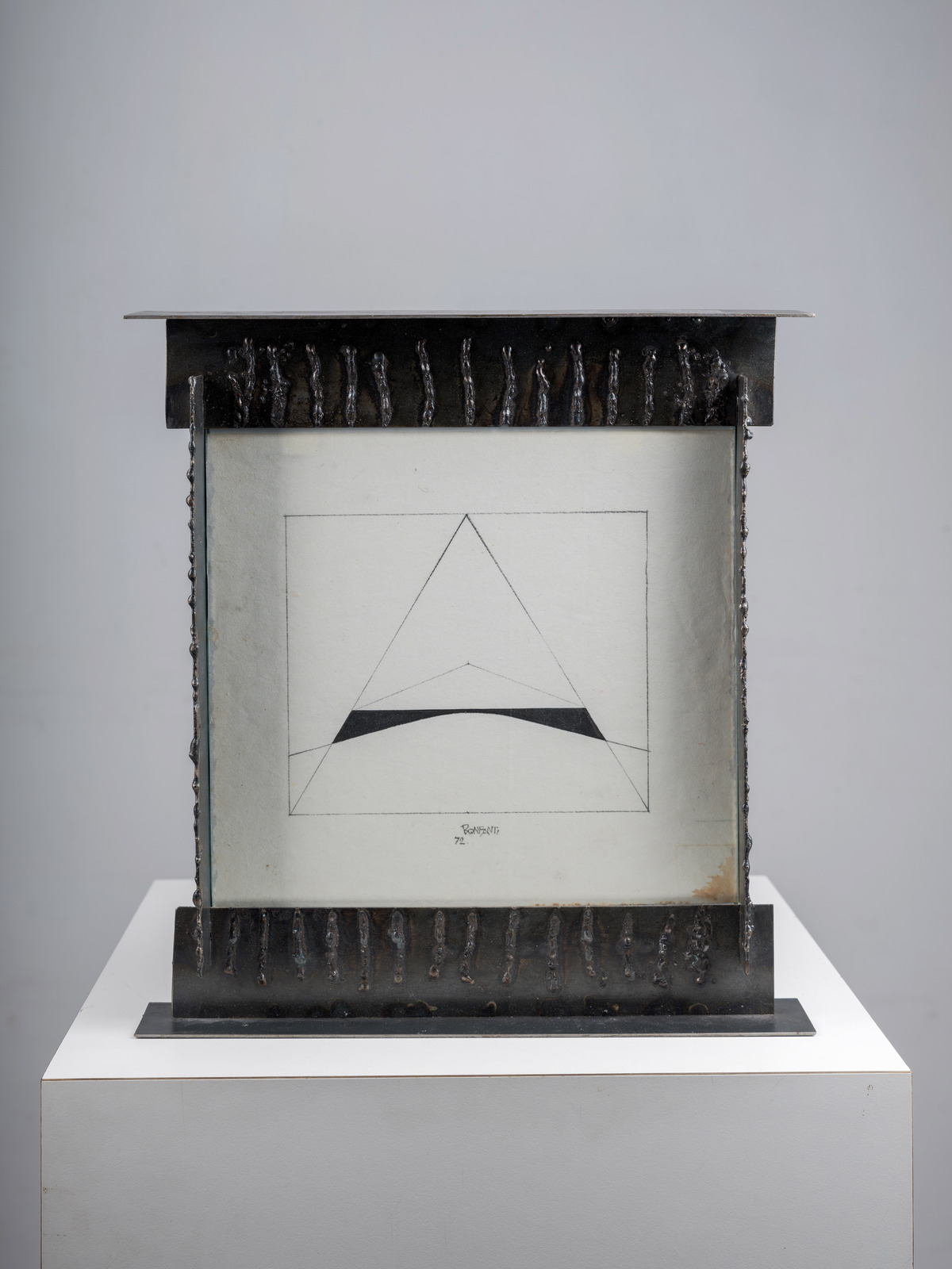 BONFANTI ARTURO (1905 - 1978) Senza titolo. 1972. Tecnica mista su carta applicata su tavola. Cm 26,50 x 26,50. Firma e anno in basso al centro. Cornice d'artista. Dimensioni con cornice: 35.5x33x5.5 cm. Lievi difetti. Cornice presente