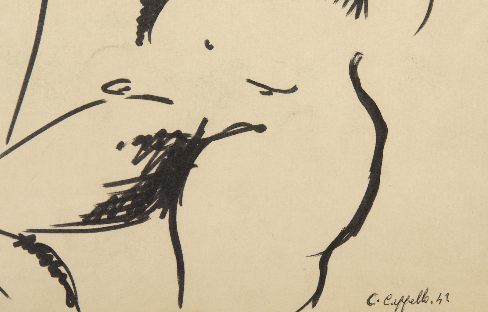 CAPPELLO CARMELO (1912 - 1996) Senza titolo. 1942. Tecnica mista su carta. Cm 19,50 x 25,20. Firma e anno in basso a destra a penna. Lievi difetti. Cornice presente