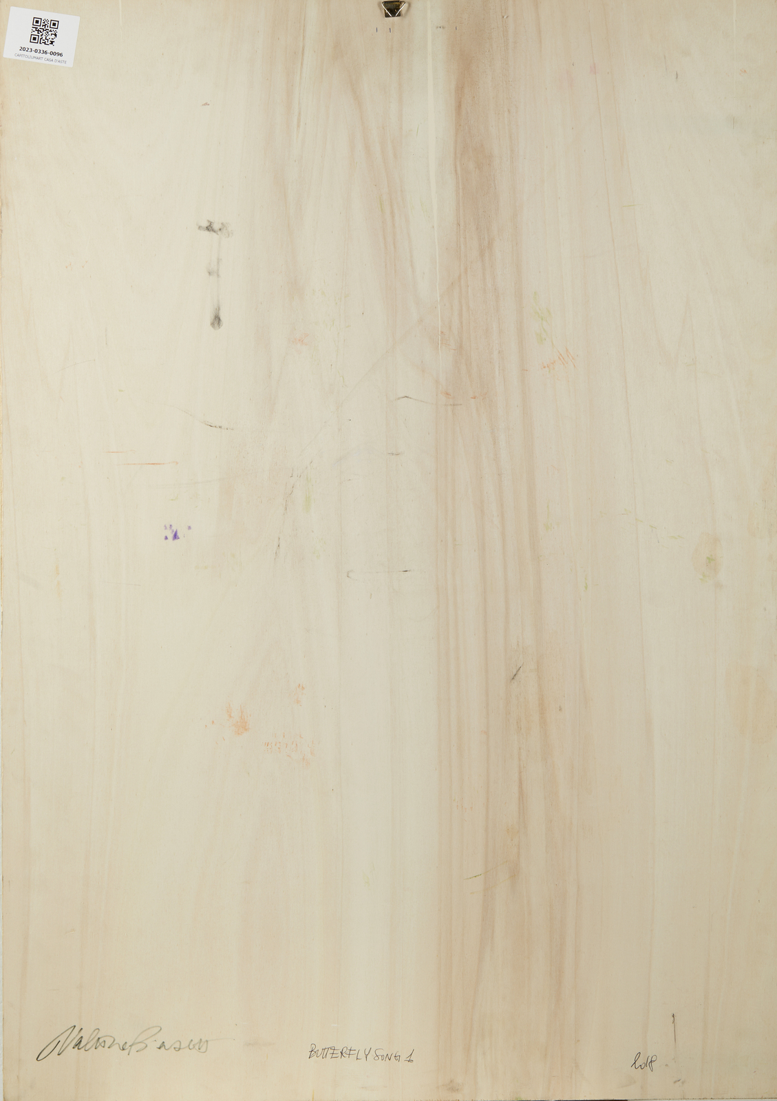 BIASETTI VALENTINA (n. 1979) Butterfly song 1. . 2018. Tecnica mista su carta applicata su tavola. Cm 59,00 x 83,00. Al retro titolo, firma e anno. Autentica dell'artista su fotografia (titolo e anno errati). Lievi difetti.