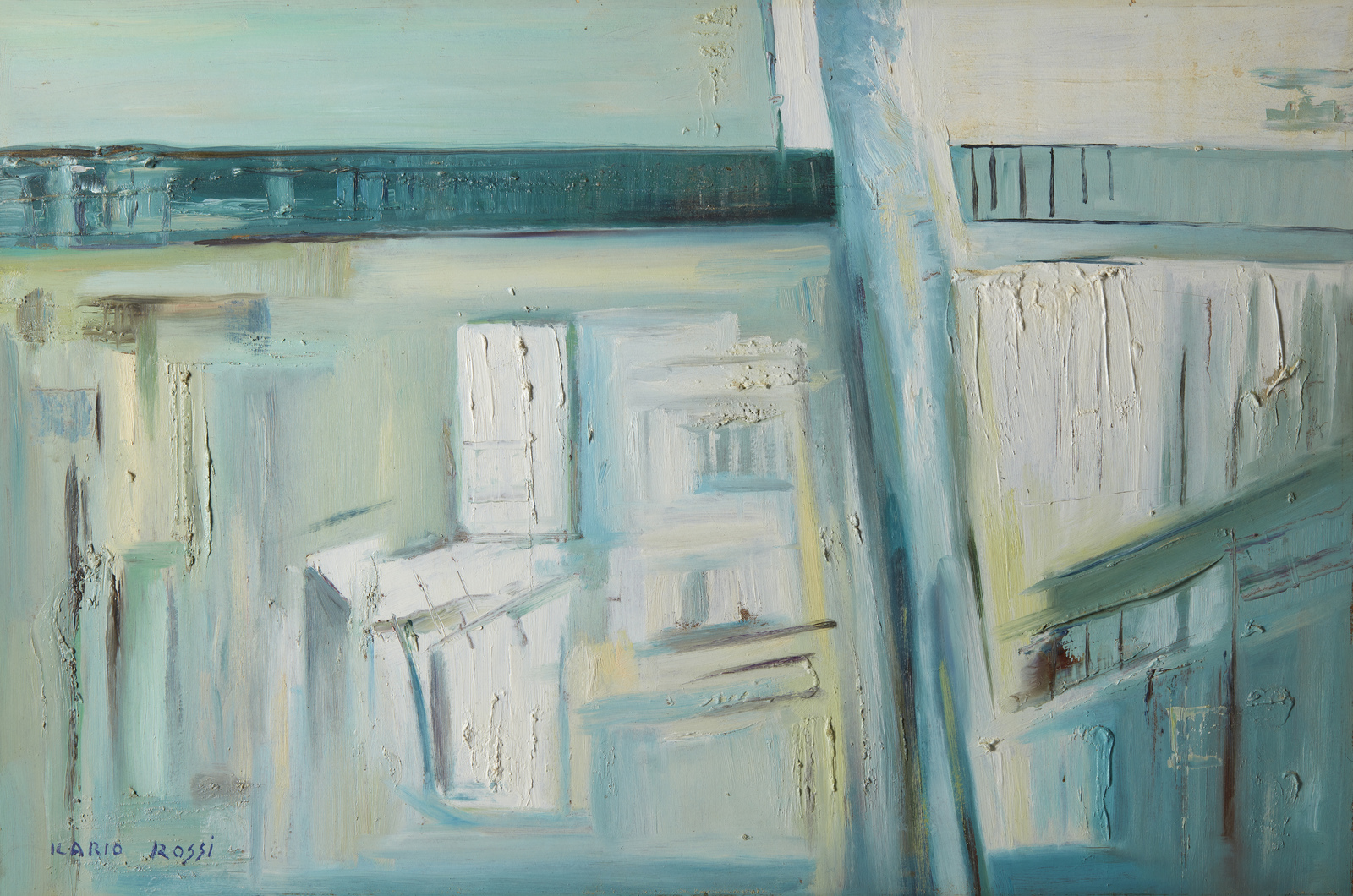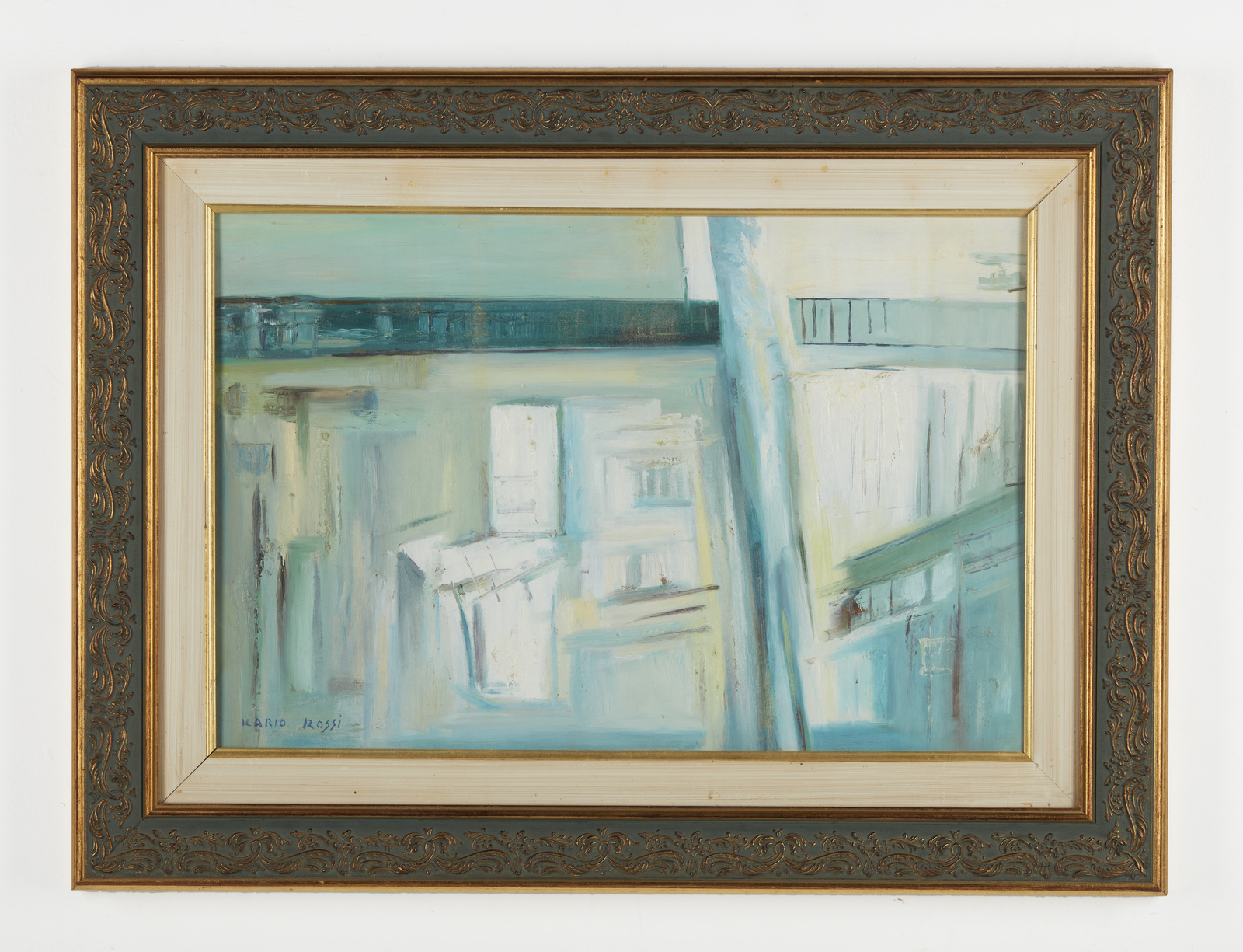 ROSSI ILARIO (1911 - 1994) Senza titolo. Olio su compensato. Cm 60,00 x 40,00. Firma in basso a sinistra e al retro. Esposizioni: "4 maestri del colore. Corrado Corazza, Carlo Corsi, Ferruccio Giacomelli, Ilario Rossi" Studio d'arte Farini, Bologna (24 febbraio 1979). Provenienza: Studio d'arte Farini, Bologna; Collezione Galli, Bologna; Collezione privata, Bologna.