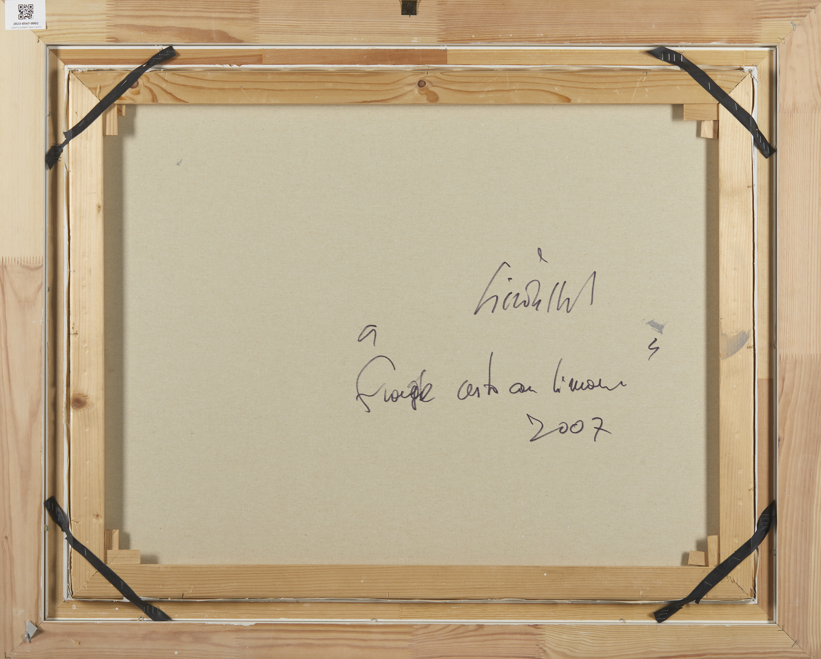 CICCOTELLI BENIAMINO (n. 1937) Grande cesta di limoni. 2007. Tecnica mista su tela. Cm 89,00 x 69,00. Firma in basso a destra. Al retro titolo, firma e anno. Autentica dell'artista su fotografia. . Cornice presente