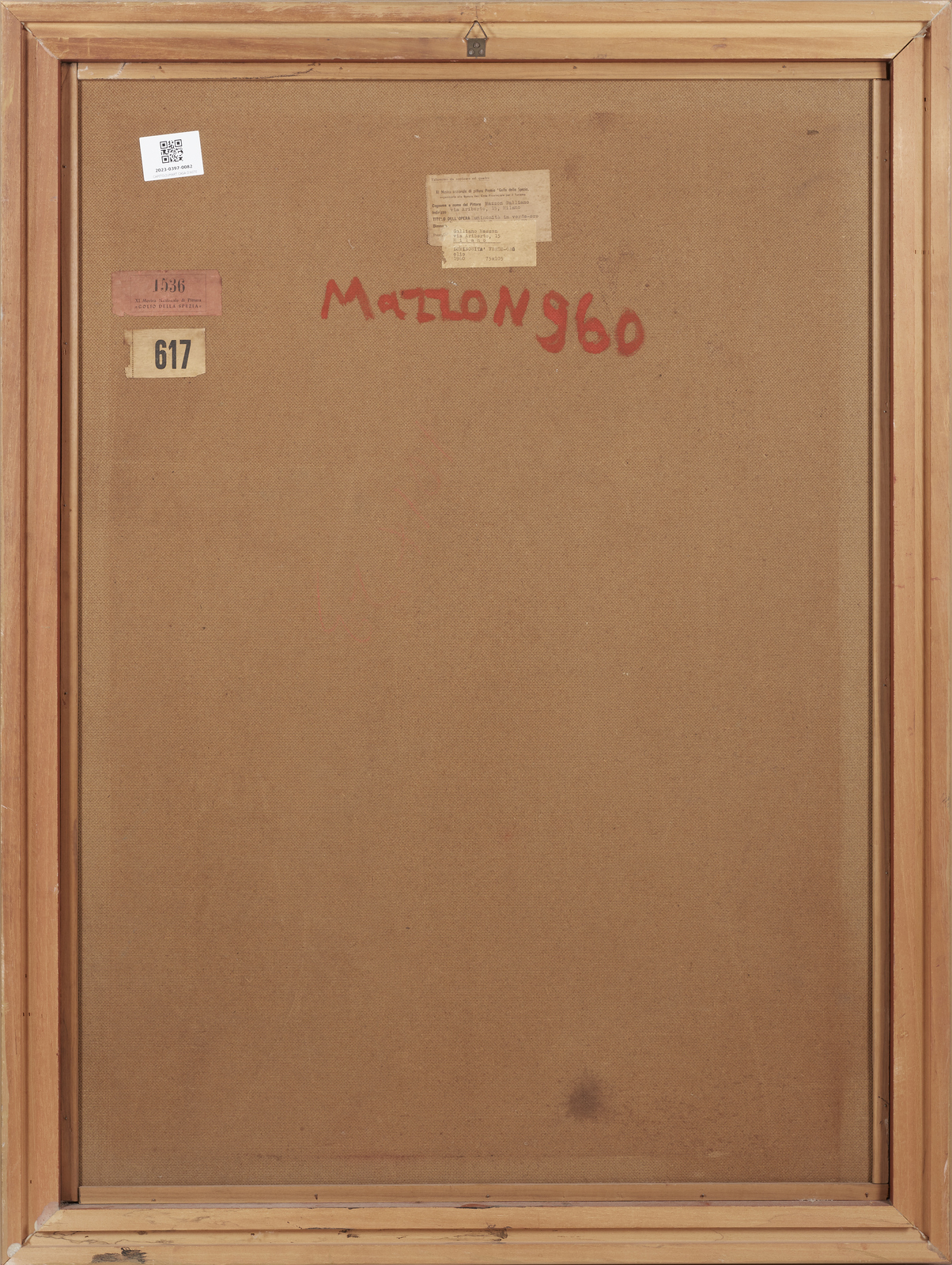 MAZZON GALLIANO (1896 - 1978) Luminosità in verde-oro. 1960. Olio su faesite. Cm 72,00 x 100,00. Firma e anno in basso a destra. Al retro firma, anno e cartigli XI Mostra nazionale di pittura Premio "Golfo della Spezia", La Spezia. Esposizioni: XI Mostra nazionale di pittura Premio "Golfo della Spezia", La Spezia, 16 luglio-27 agosto 1961. Provenienza: Collezione Besner - Decca. Lievi difetti. Cornice presente