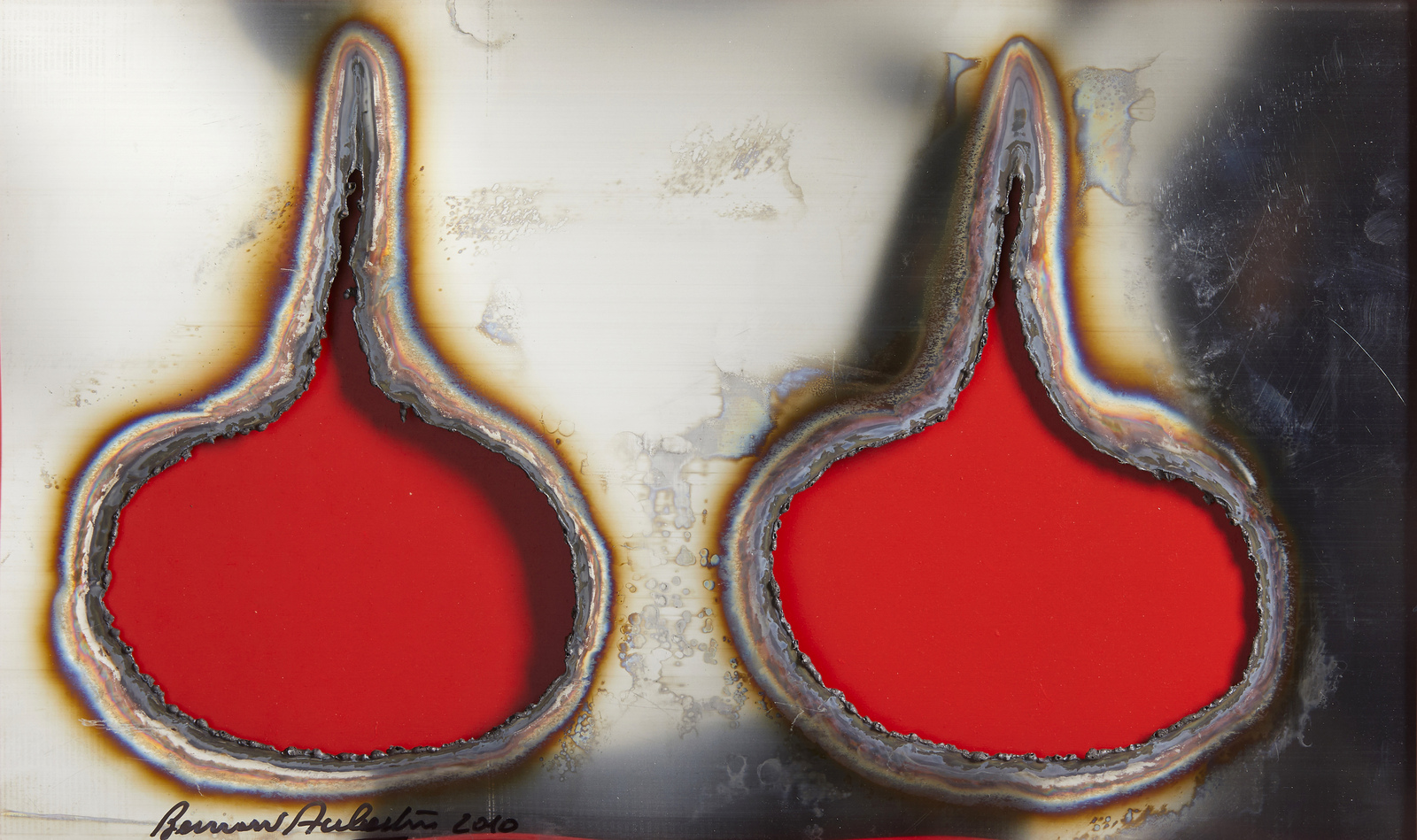 AUBERTIN BERNARD (1934 - 2015) Senza titolo. 2010. Lamiera bruciata. Cm 47,50 x 28,00. Firma e anno in basso a sinistra a pennarello. Autentica dell'artista su fotografia con firma Giancarlo Rovetta. Lievi difetti. Cornice presente