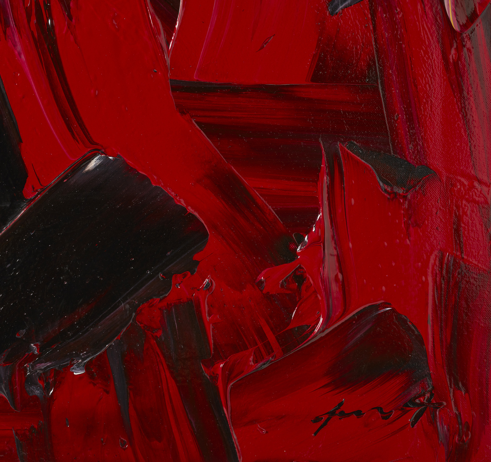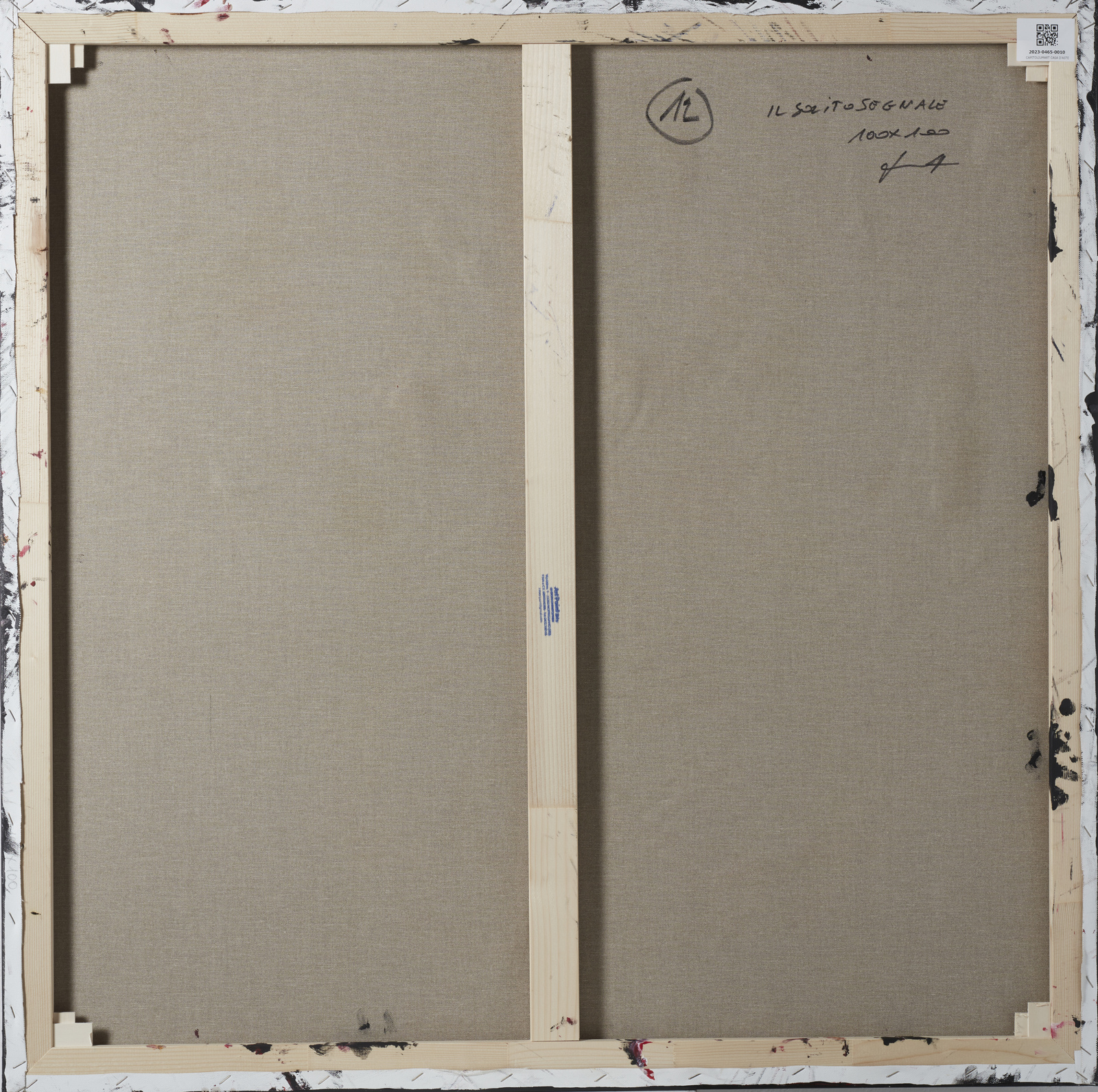 DE LUTTI PIERLUIGI (n. 1959) Il solito segnale. Olio su tela . Cm 100,00 x 100,00. Firma in basso a destra. Al retro titolo e firma. Autentica dell'artista su fotografia.