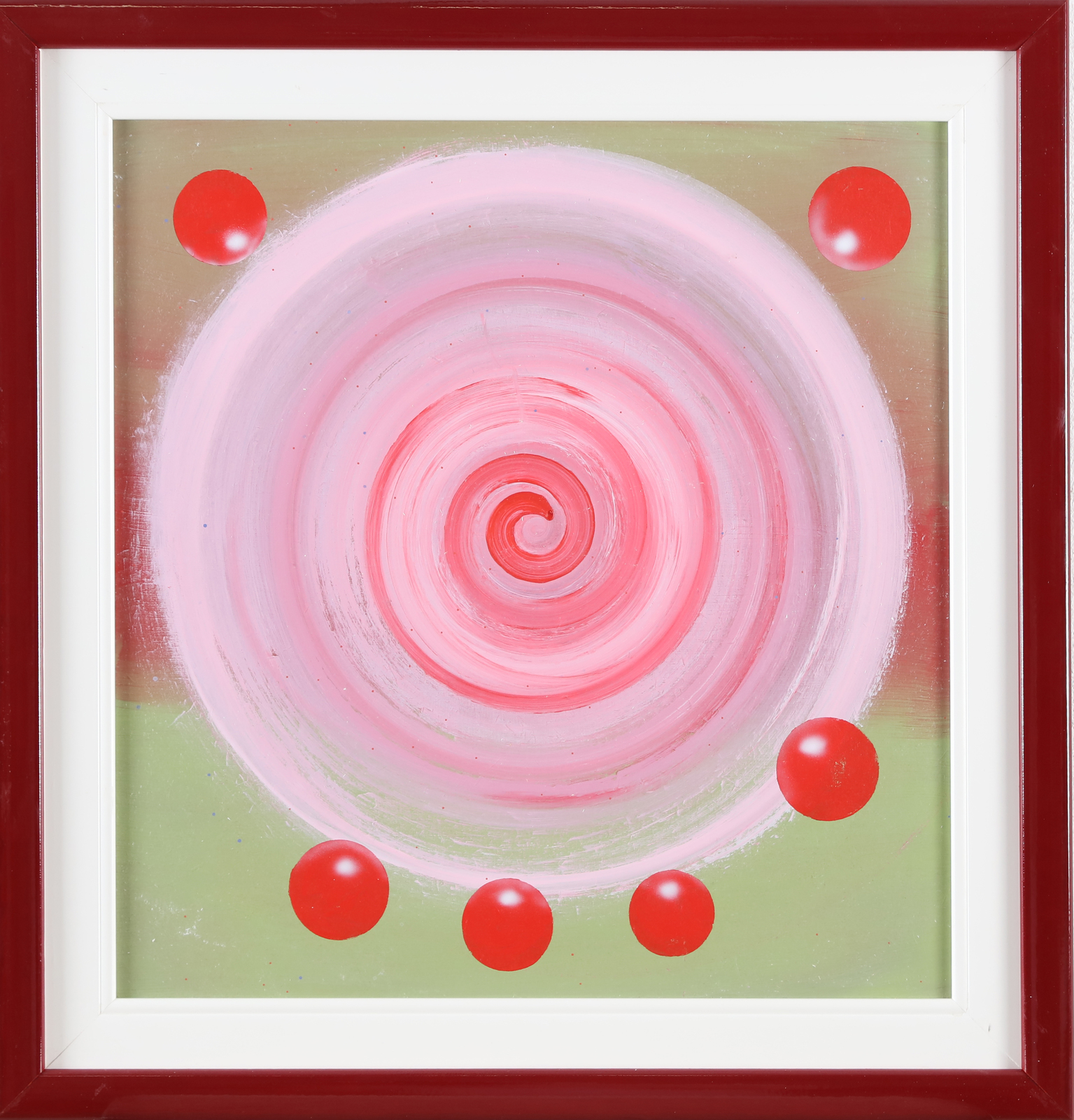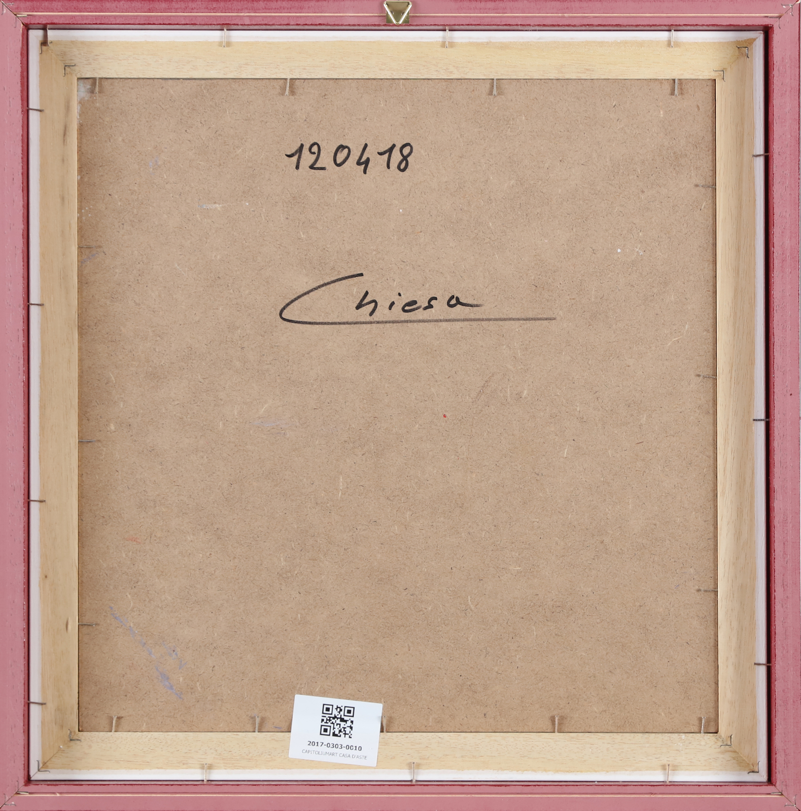 CHIESA RENATO NATALE (n. 1947) Sei sfere. 2012. Acrilico su tavola. Cm 38,05 x 40,00. Al retro firma. Opera archiviata presso Arte Capital, Milano, come da documentazione fotografica allegata all'opera riportante il relativo numero d'inventario con firma dell'artista.