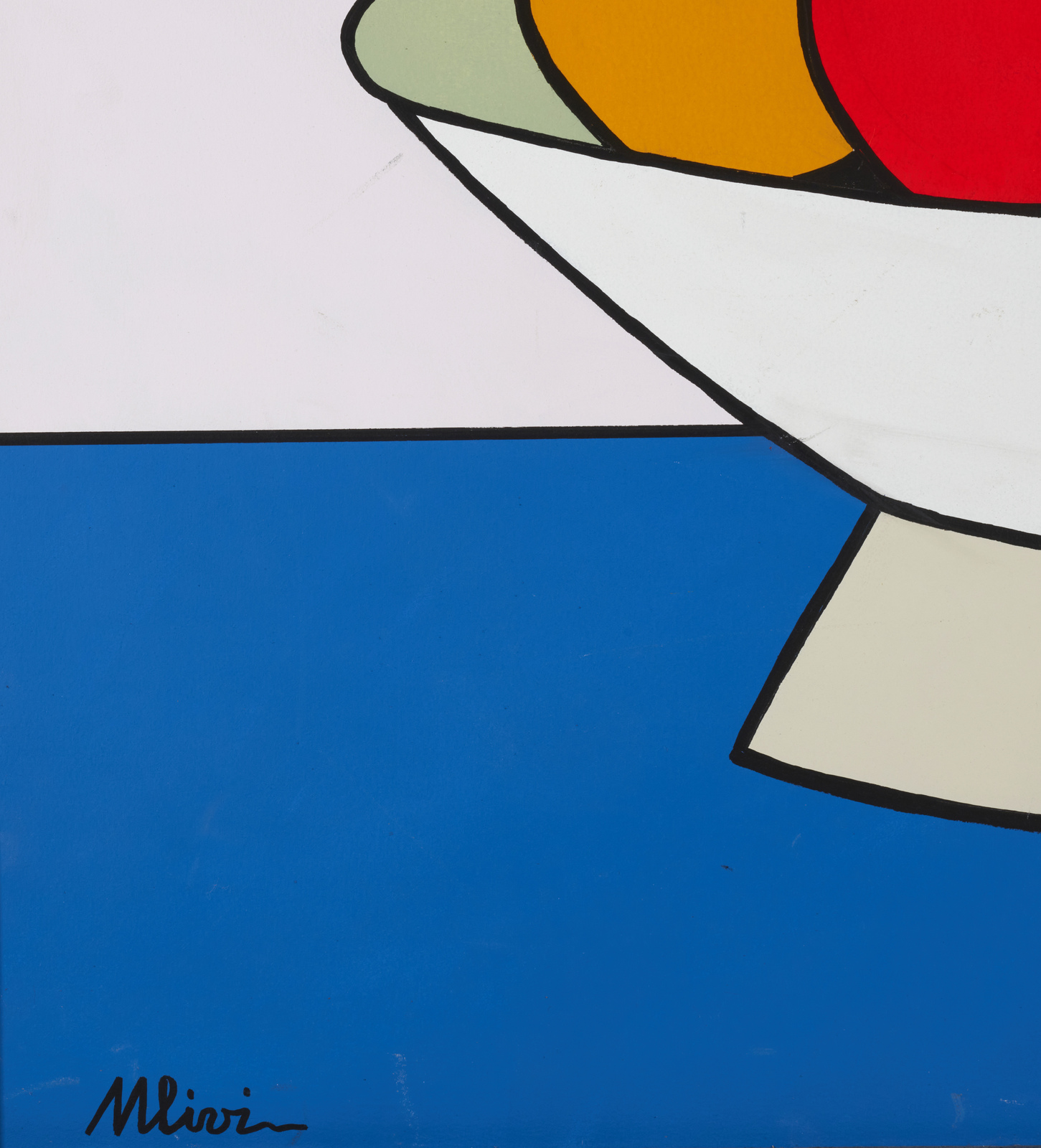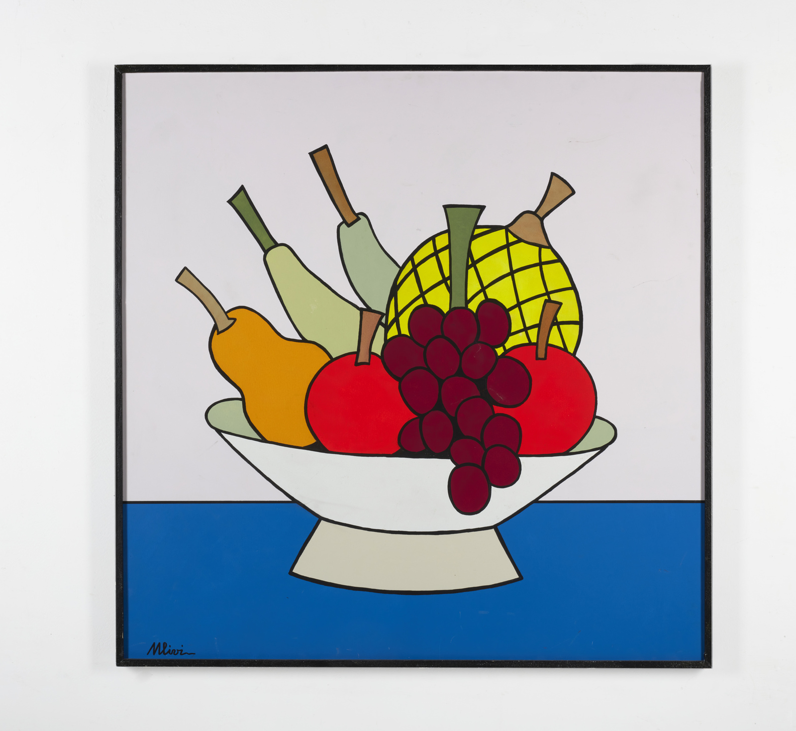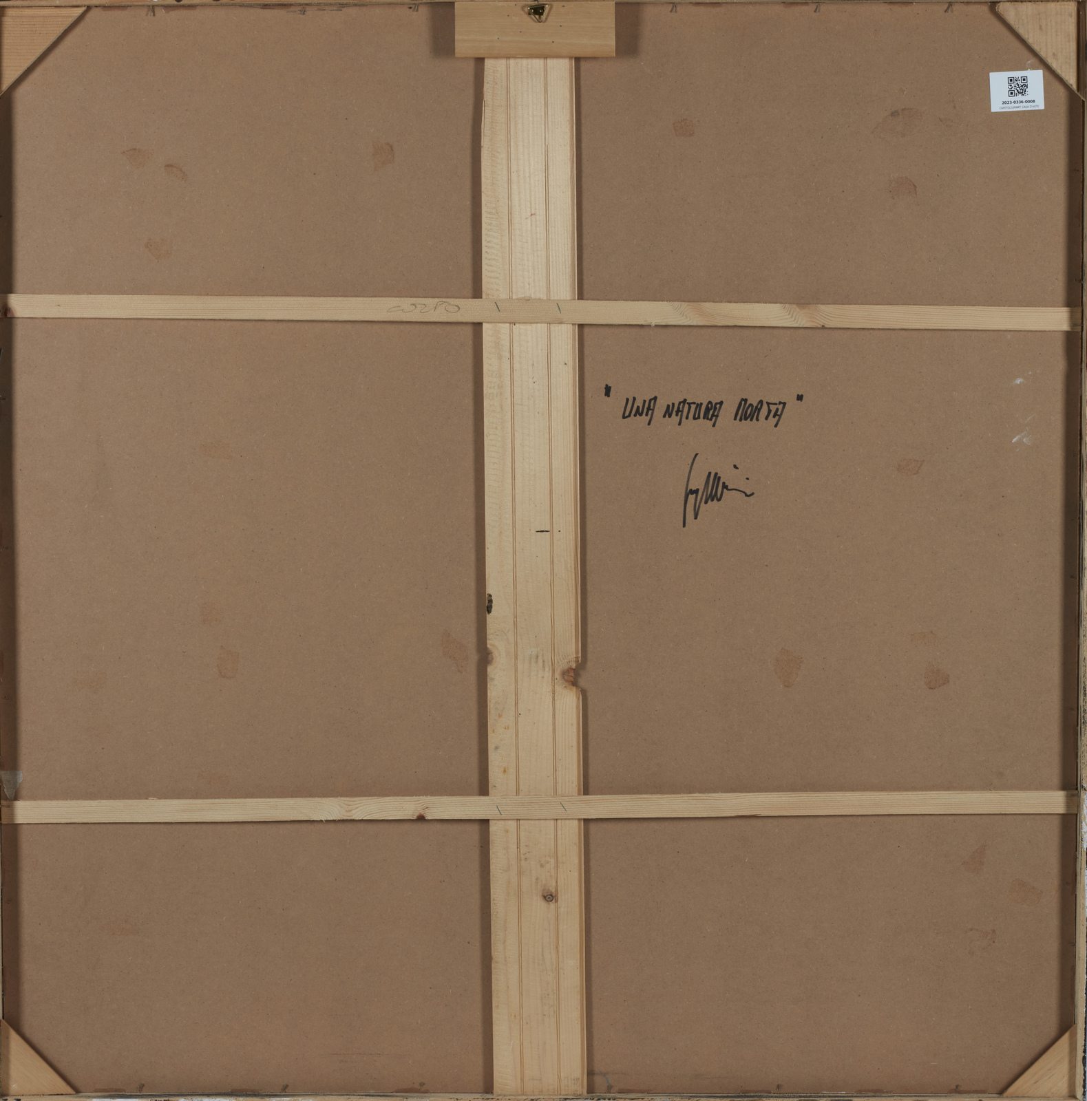 ULIVI SERGIO (n. 1955) Una natura morta. Acrilico su tavola. Cm 109,00 x 109,00. Firma in basso a sinistra. Al retro titolo e firma.