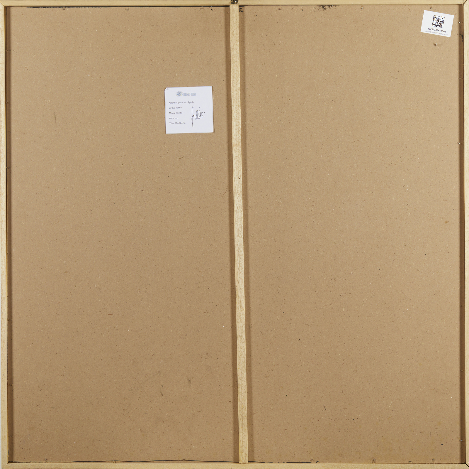 ULIVI SERGIO (n. 1955) Due beagle. 2007. Acrilico su tavola. Cm 80,00 x 80,00. Firma in basso a sinistra. Al retro cartiglio descrittivo dell'artista.