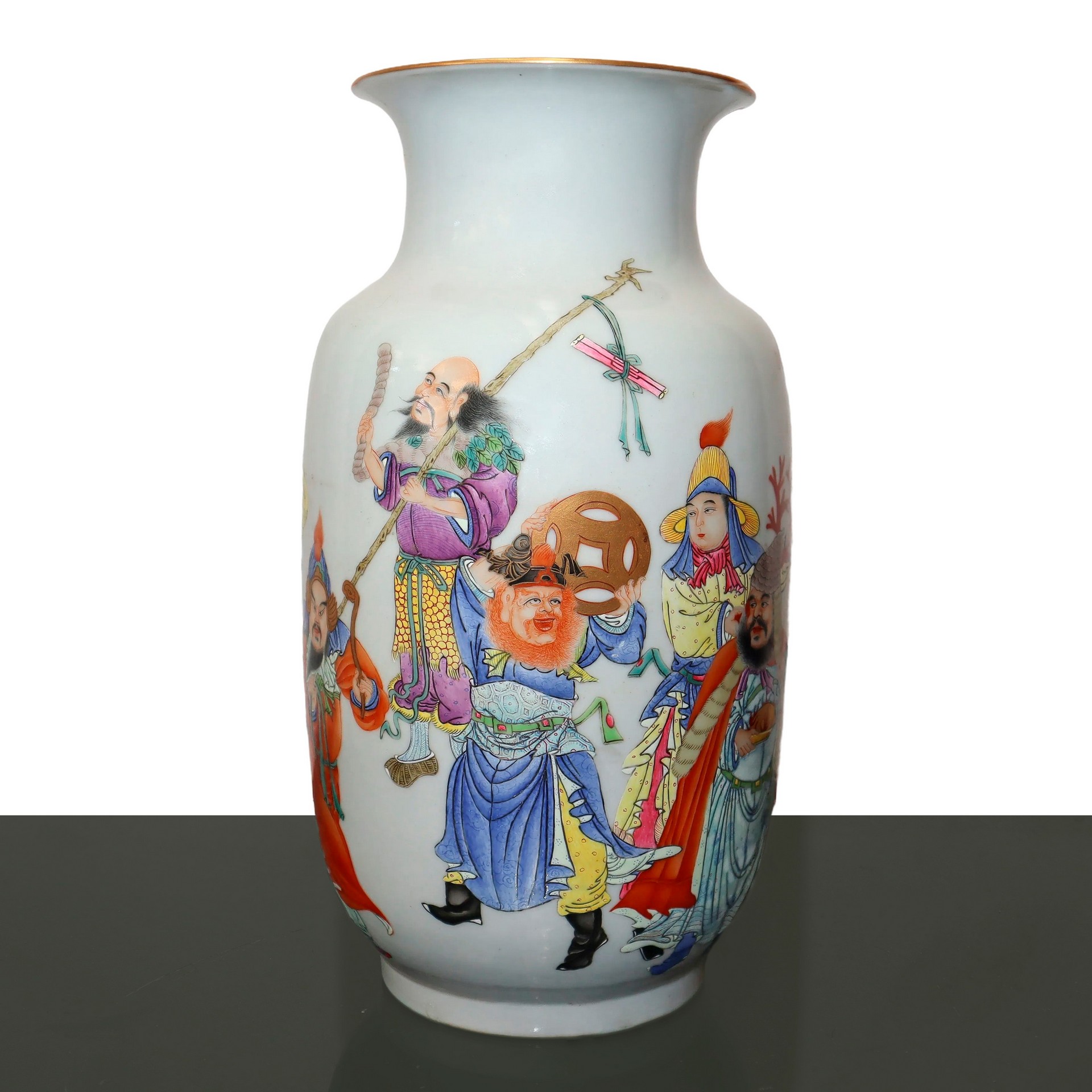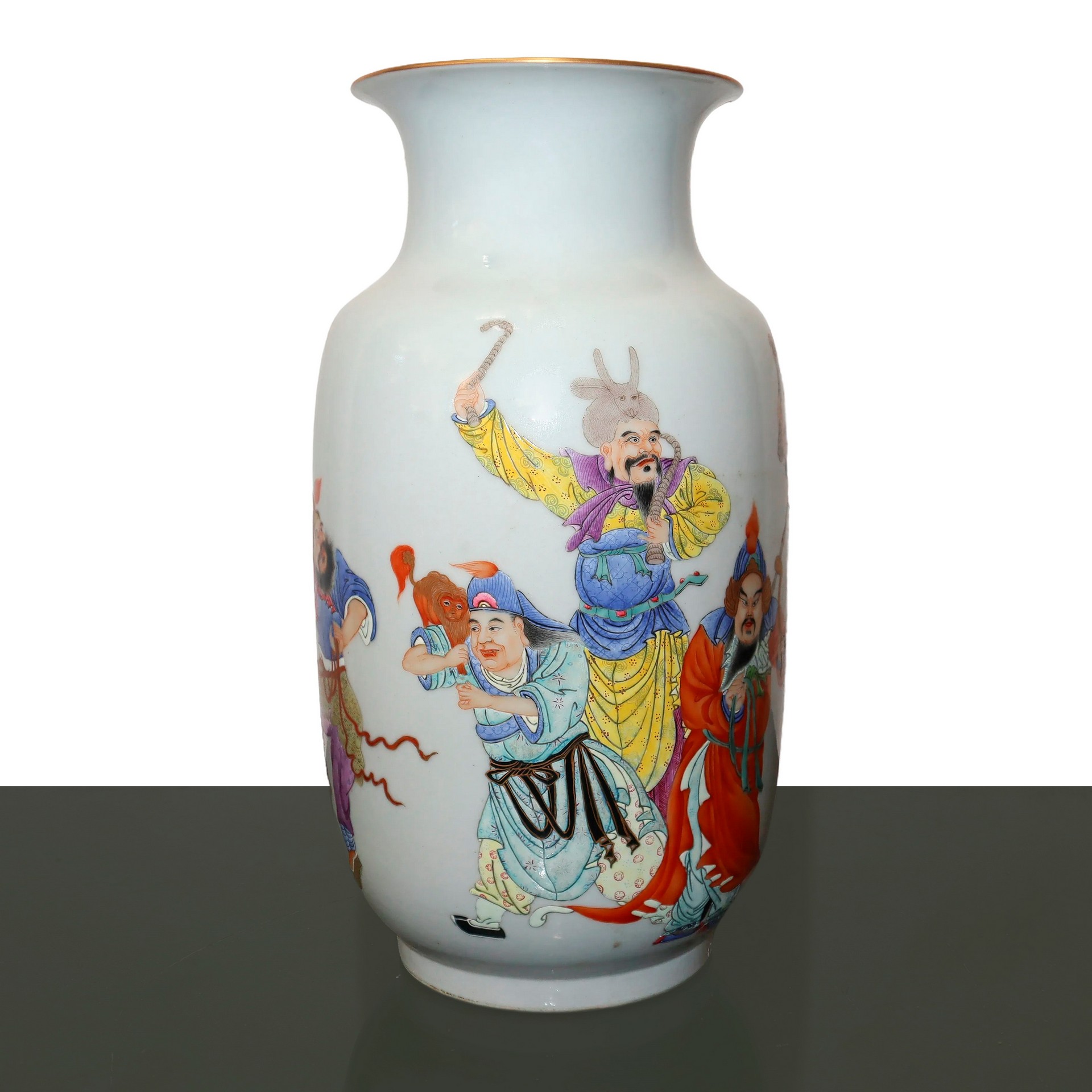 Vaso in maiolica dipinta con storie e fiabe cinesi, Republic period H cm 25