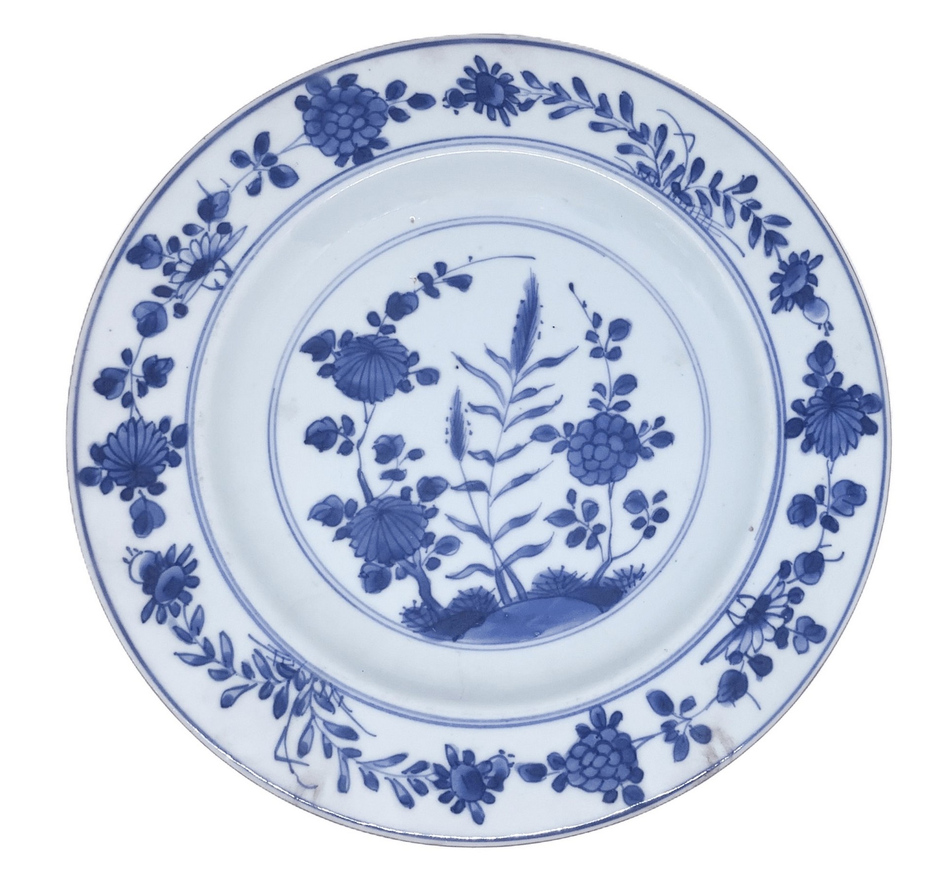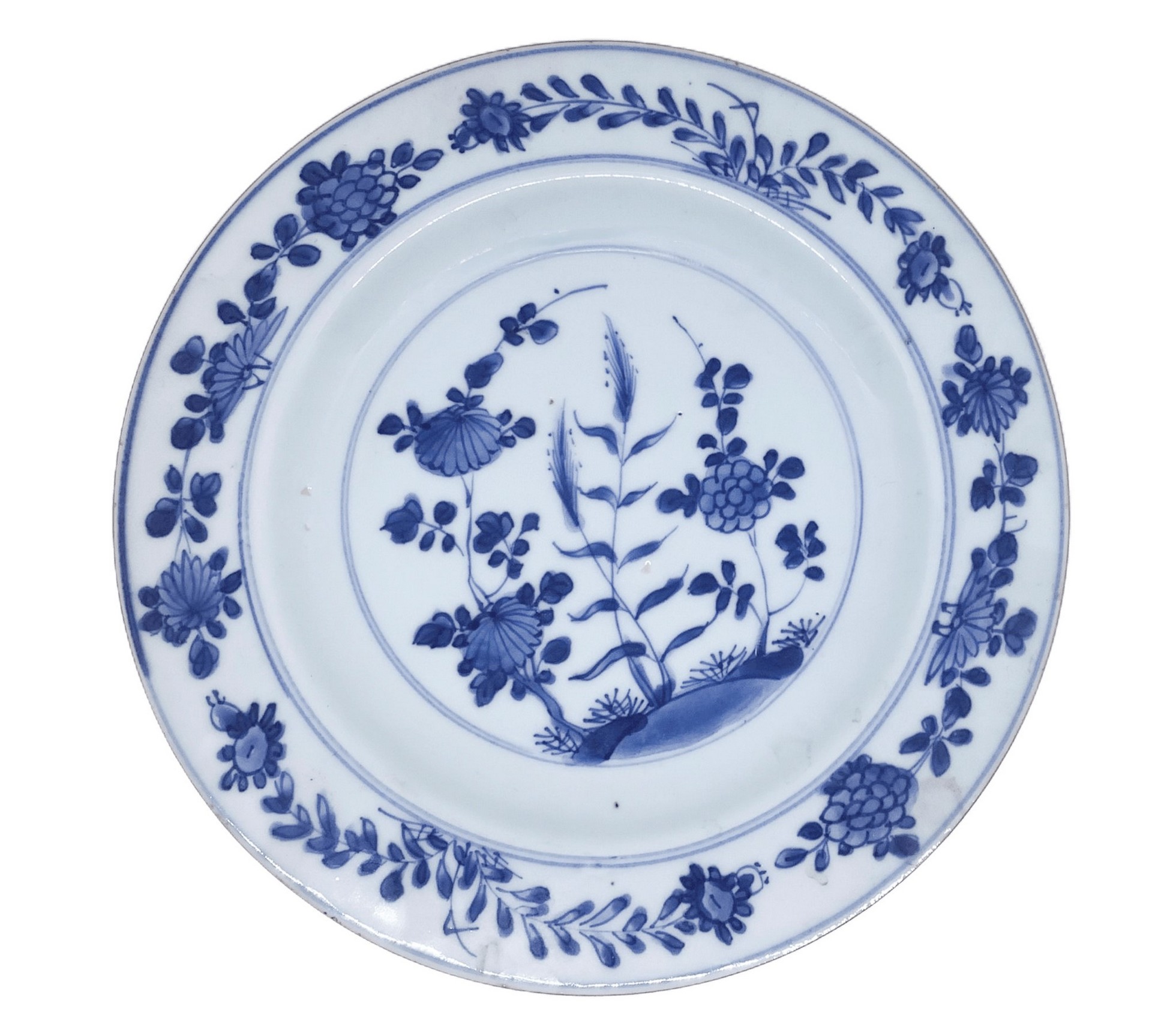 Coppia di piatti con decorazioni floreali nei toni del blu d cm 23