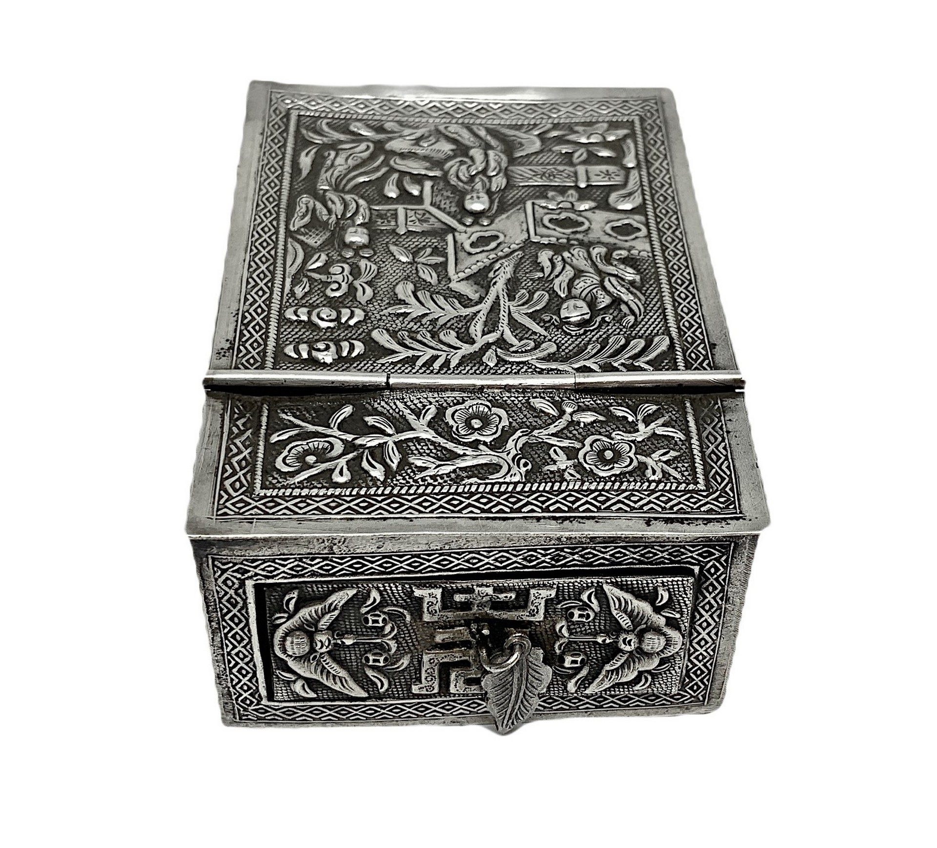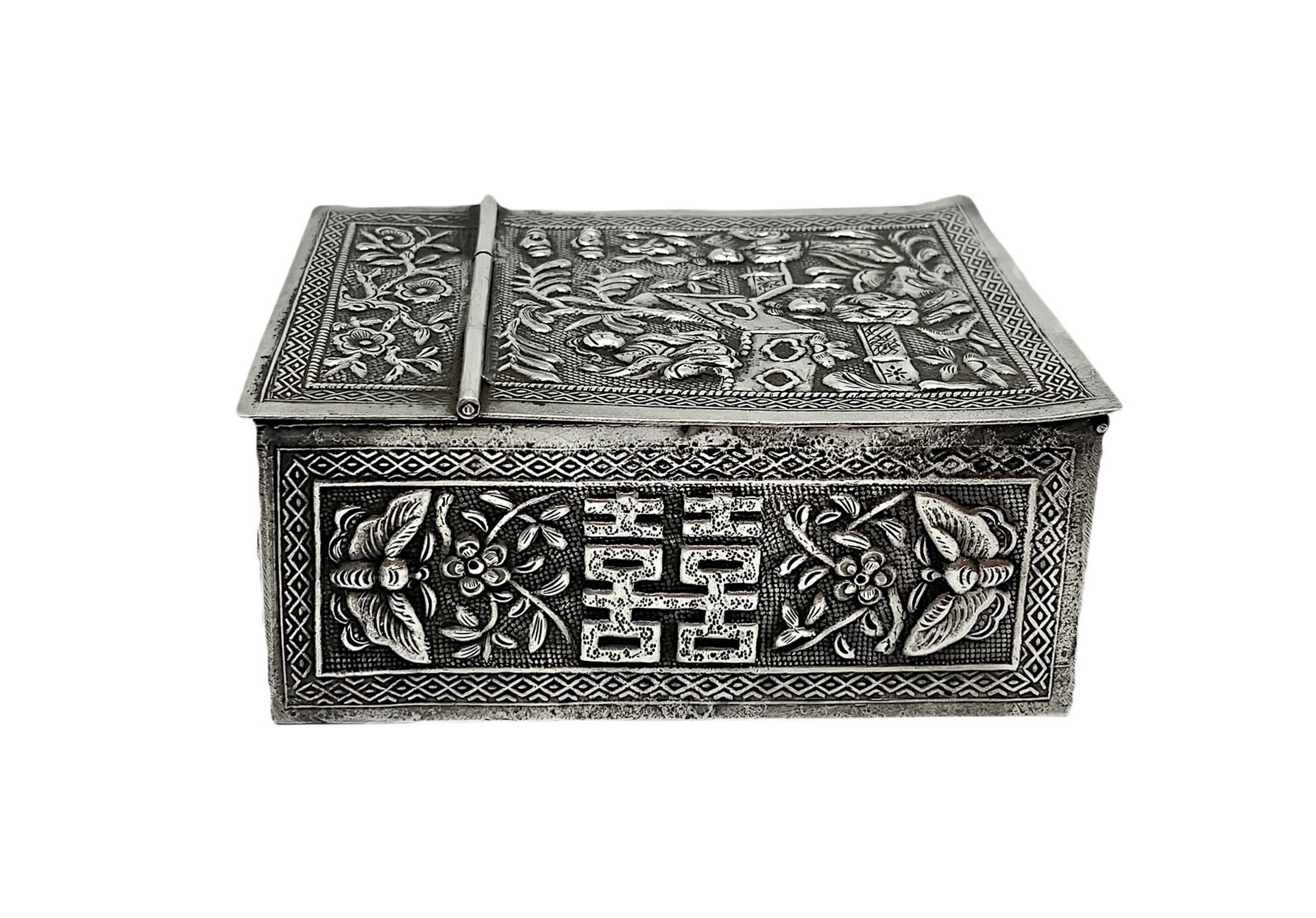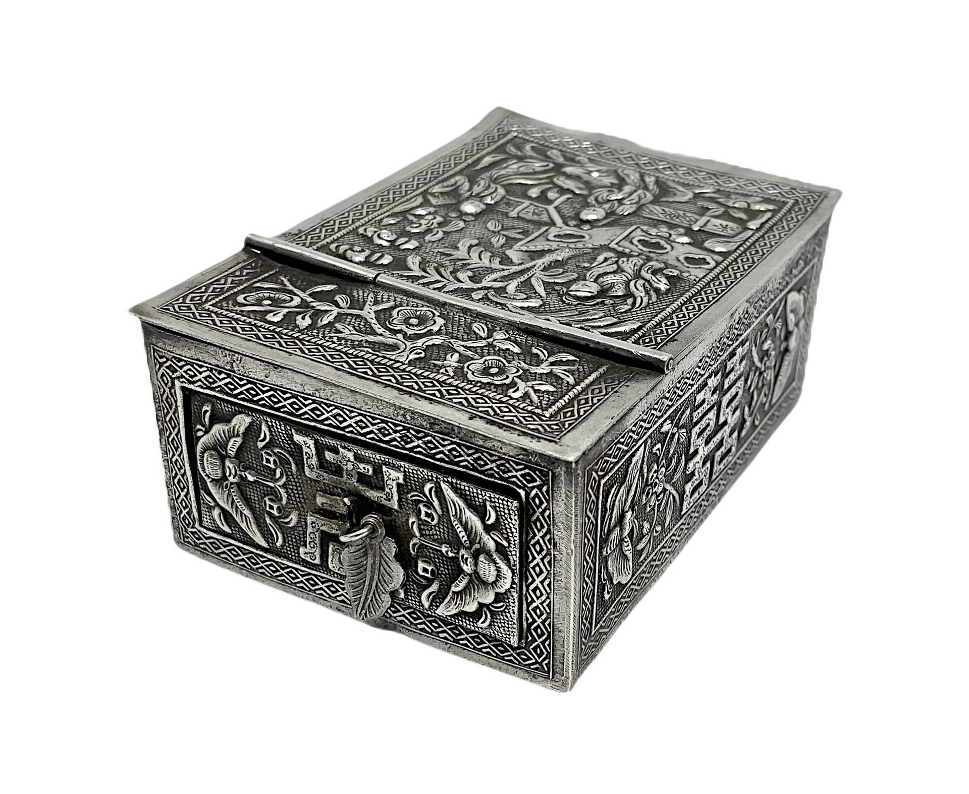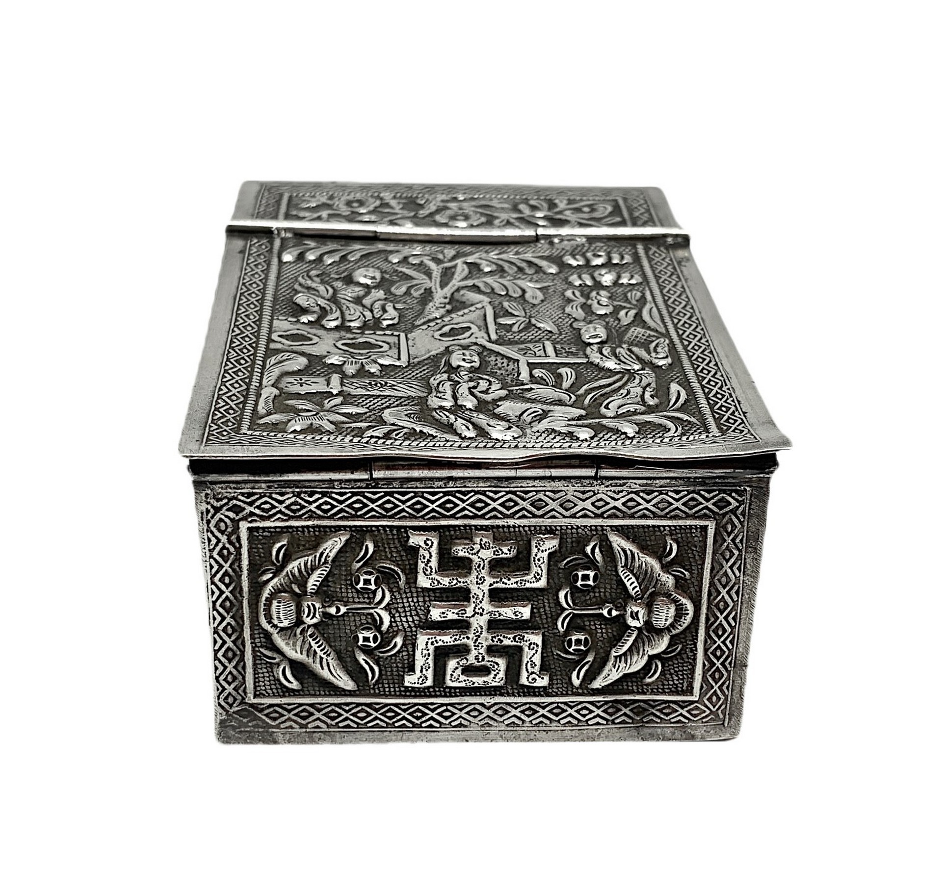 Piccola scatola con cassetto e specchio con scena di vita giapponese H 2,7 cm. Larghezza 4,5 cm. Profondità 6,9 cm