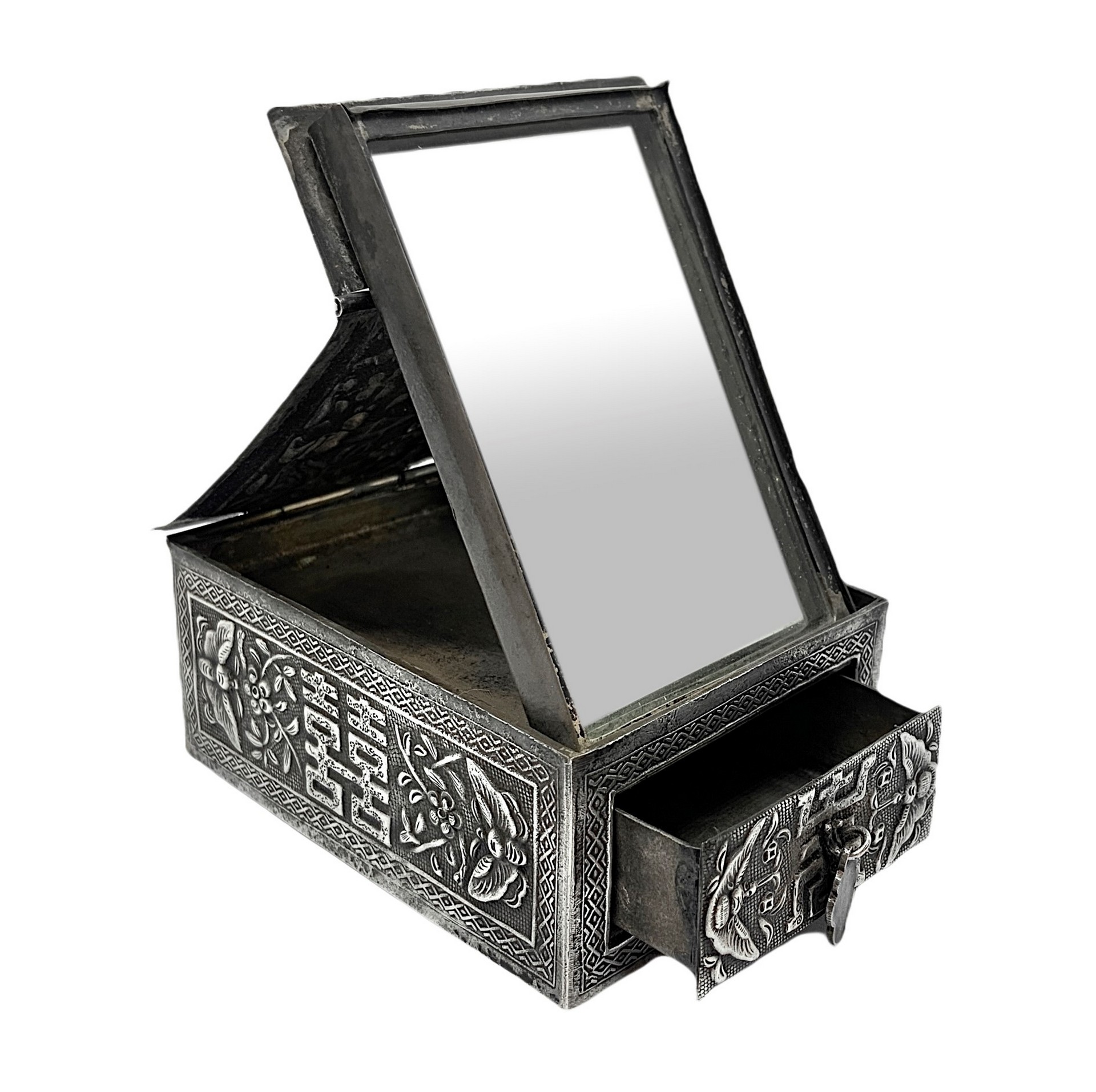 Piccola scatola con cassetto e specchio con scena di vita giapponese