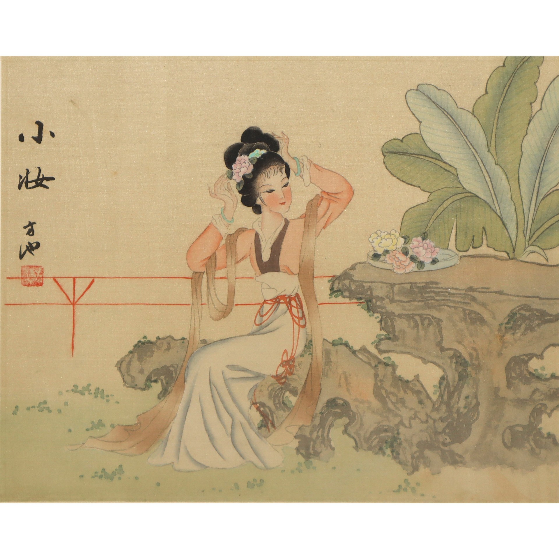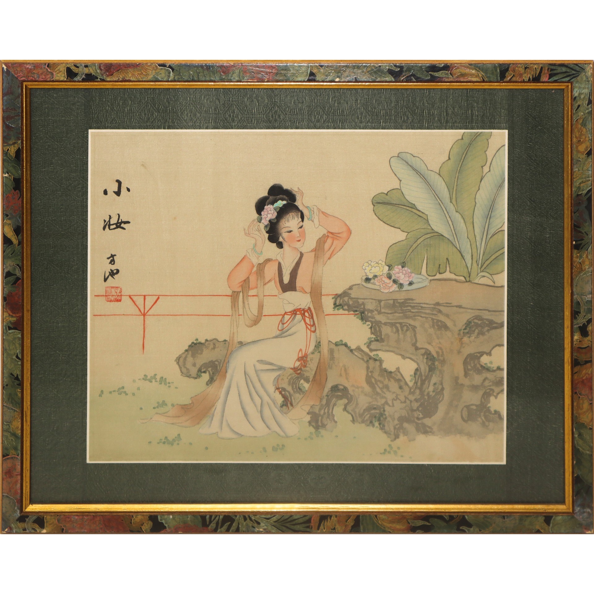 Dama giapponese h cm 25 x 30, in cornice cm 36 x43 diinto su seta
