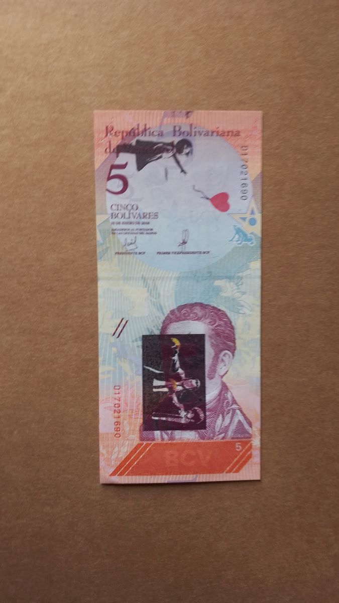 Intervento su Banconota Originale 5 Bolivares