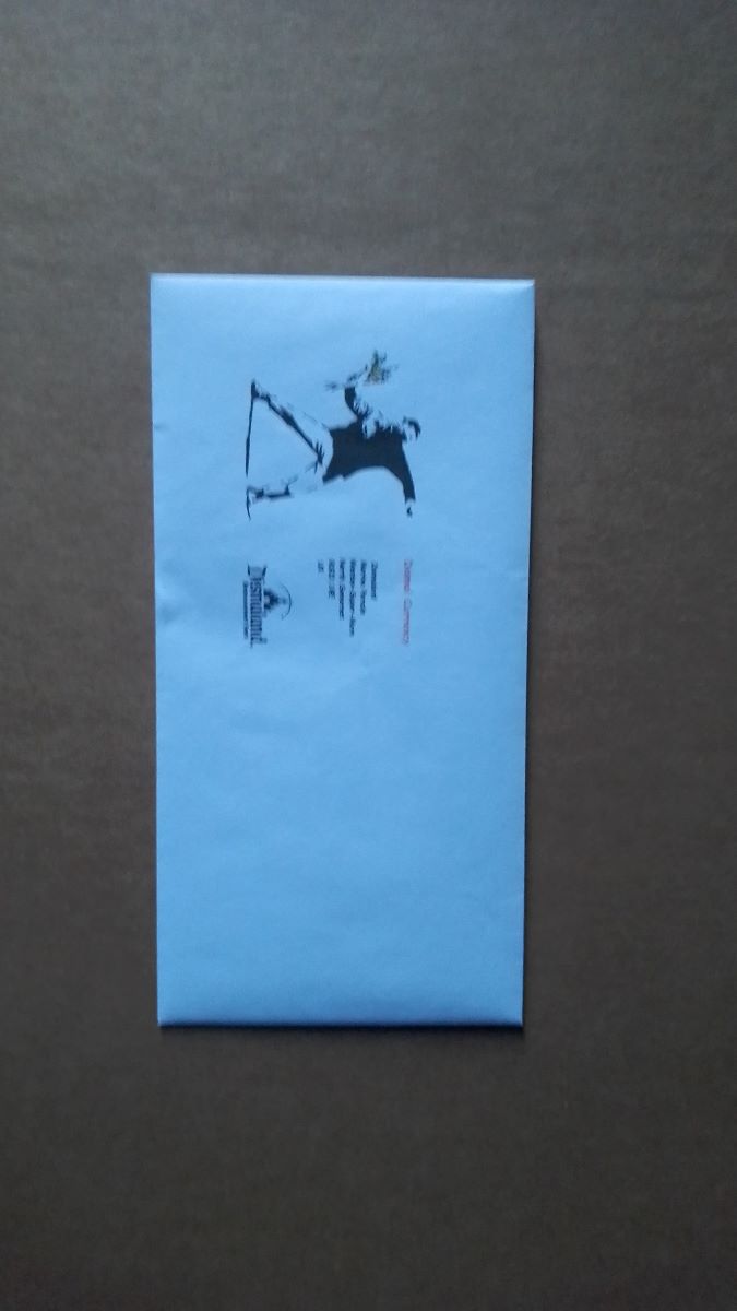 al retro Timbro Dismaland in Nero e Firma con Timbro Banksy