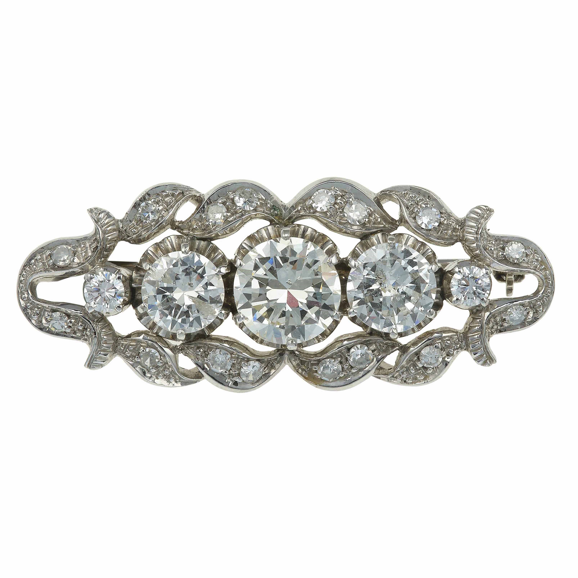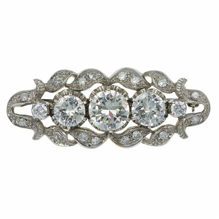 Lotto 124 | Spilla con tre diamanti centrali di vecchio taglio di ct 0.89, 2.04 e 1.06 circa