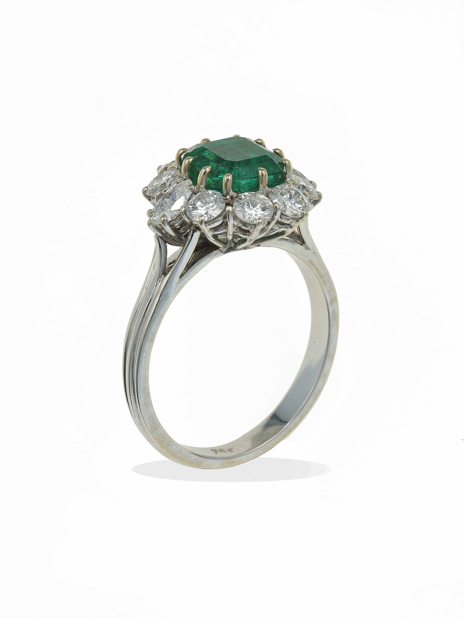 Anello con smeraldo Colombia di ct 2.20 circa e diamanti a contorno