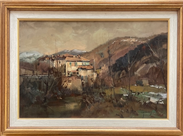 Arturo Bonanomi Calolziocorte (LC) 1920 - Lecco 2010 Paesaggio con neve Olio su masonite cm 60x40